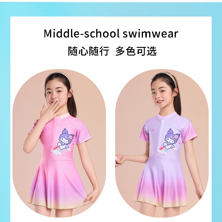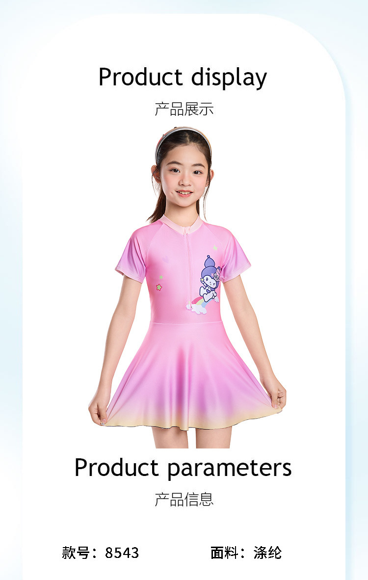 여름 새로운 어린이 수영복 만화 스커트 스타일 어린이 원피스 수영복 소녀 반팔 태양 보호 스포츠 어린이 수영복스토어 가기