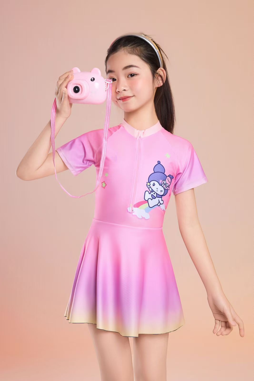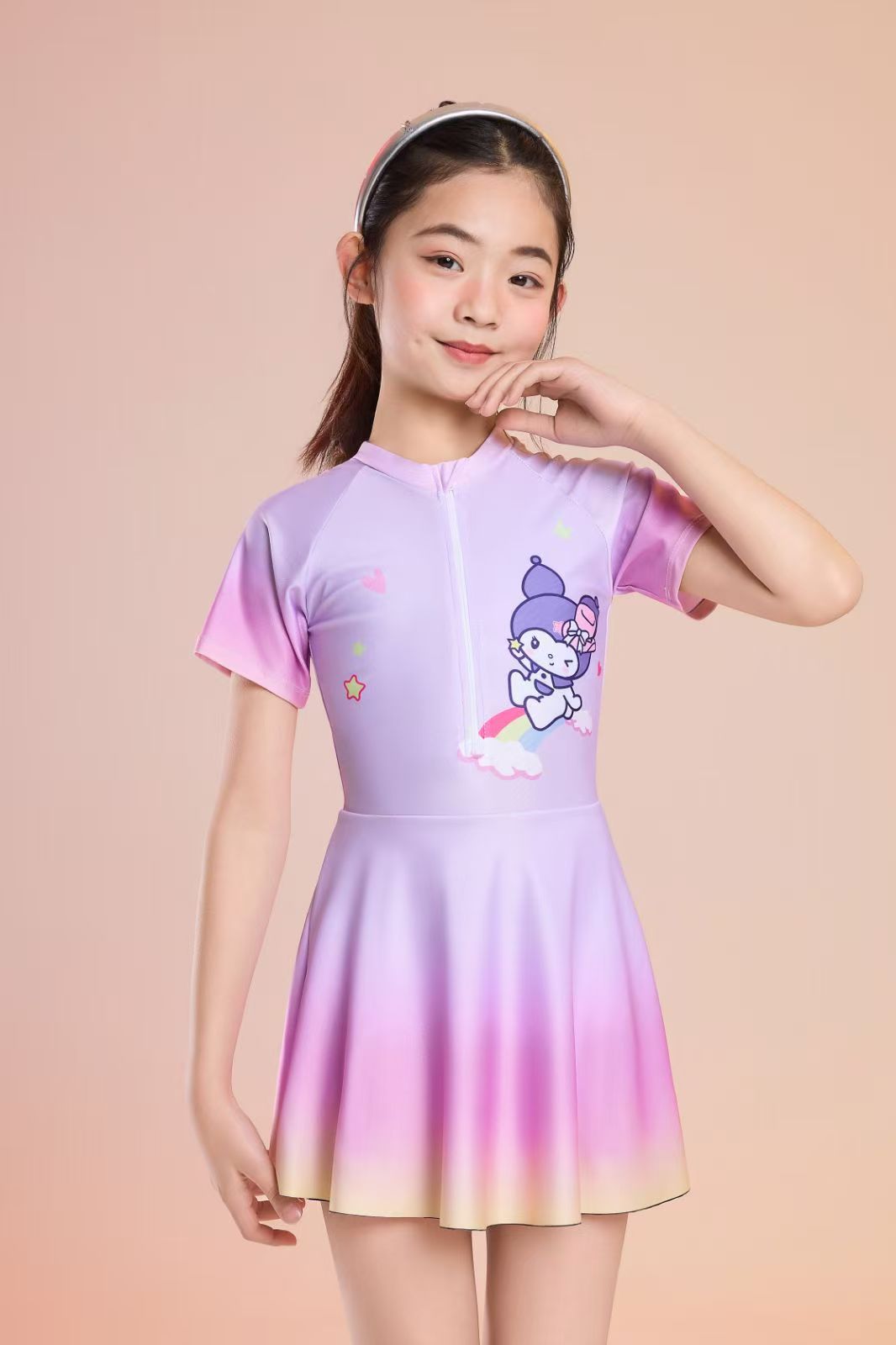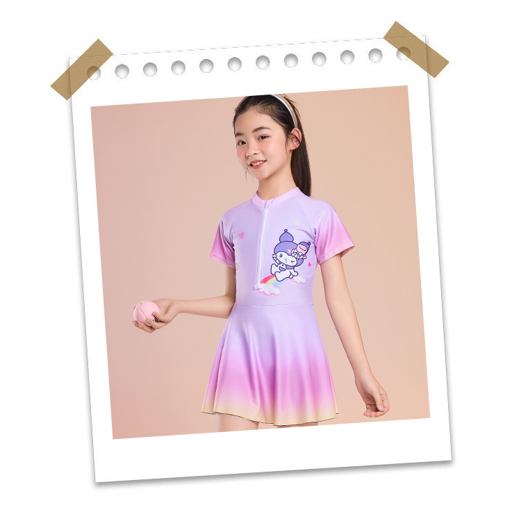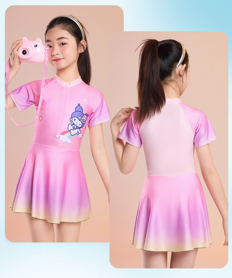 여름 새로운 어린이 수영복 만화 스커트 스타일 어린이 원피스 수영복 소녀 반팔 태양 보호 스포츠 어린이 수영복
