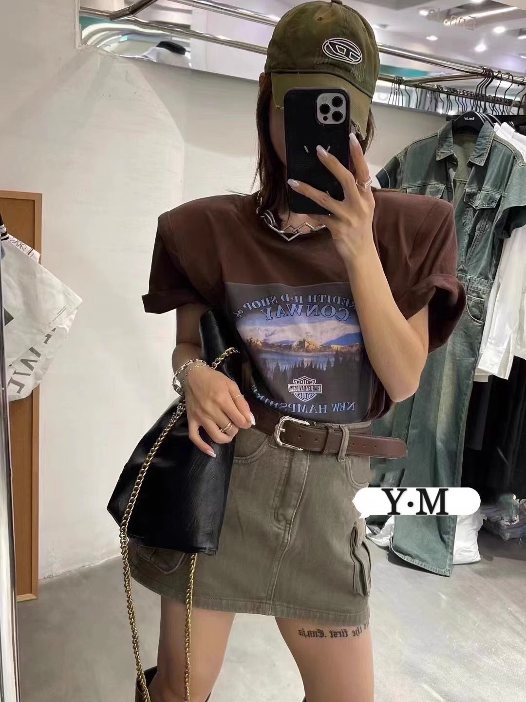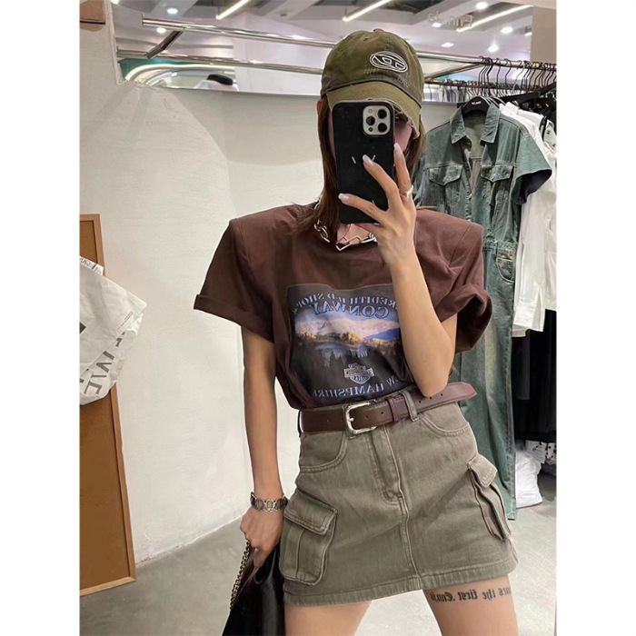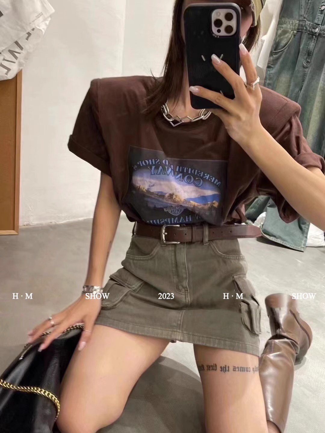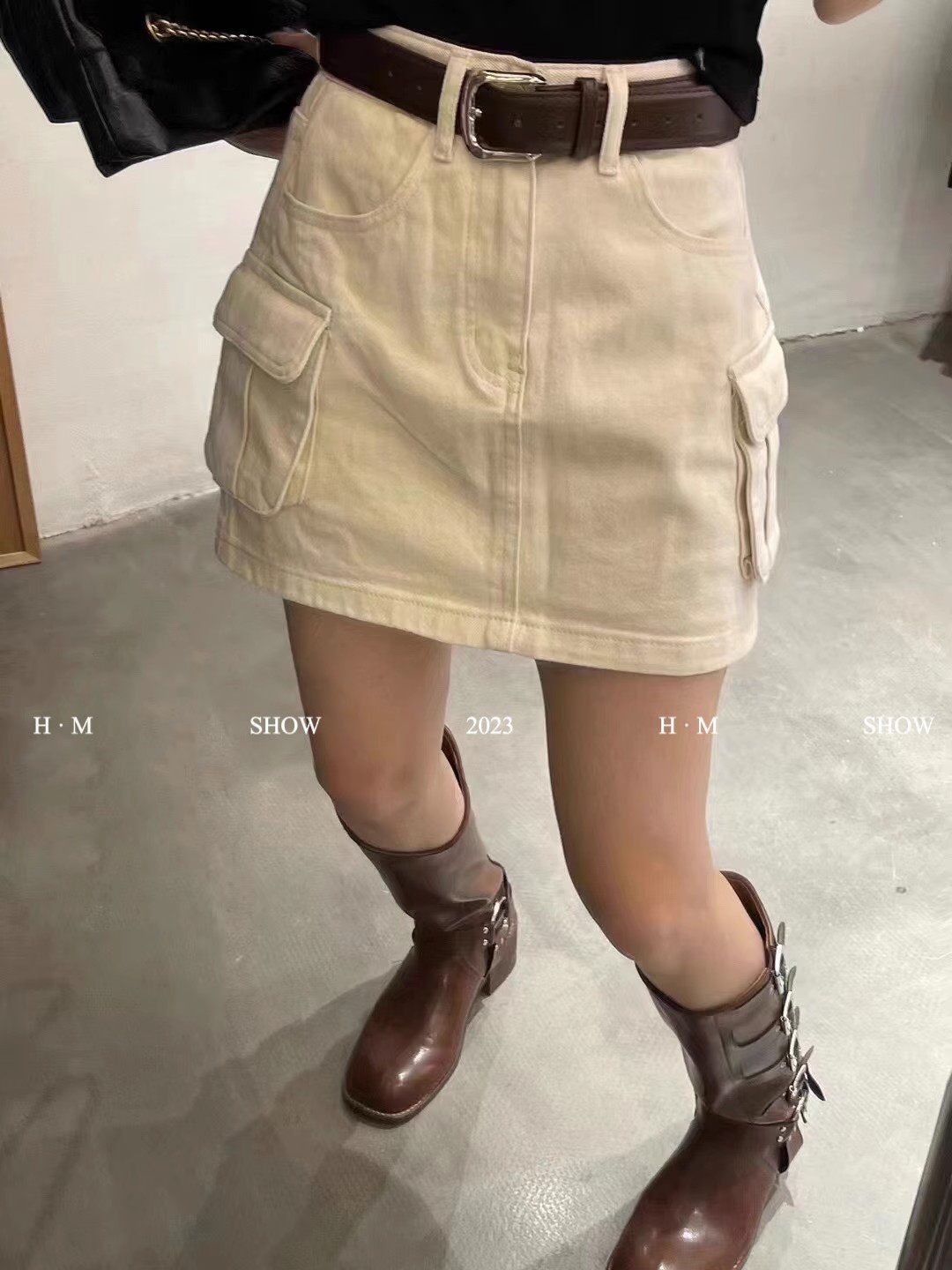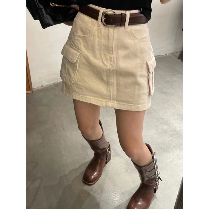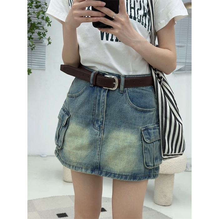 대형 포켓 툴링 데님 스커트 여성용 2023 새로운 패션 디자인 감각 하이 웨이스트 슬림 A 라인 힙 스커트스토어 가기
