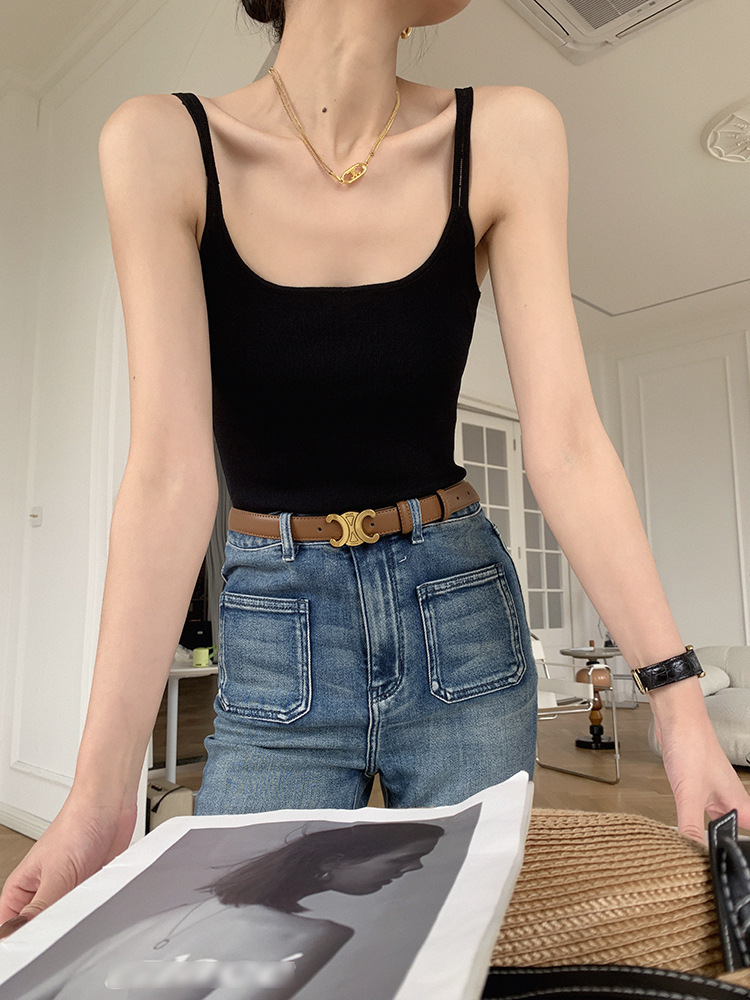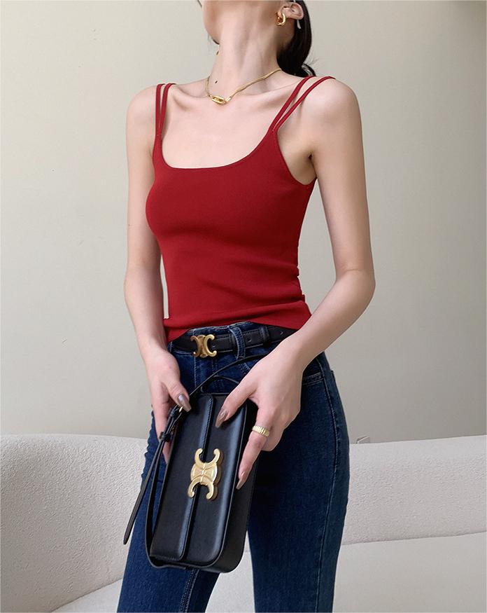 빨간색 민소매 니트 조끼 여성용 여름 2025 신상 슬림핏 다용도 탑 여성용스토어 가기