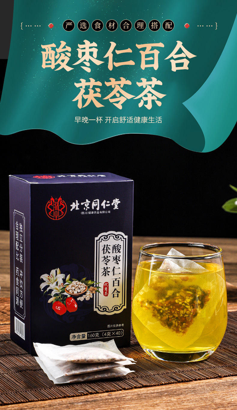 베이징통렌탕 사천진황산자핵백합포리지아차 수면차 굿나잇차 포리지아산자핵차 도매