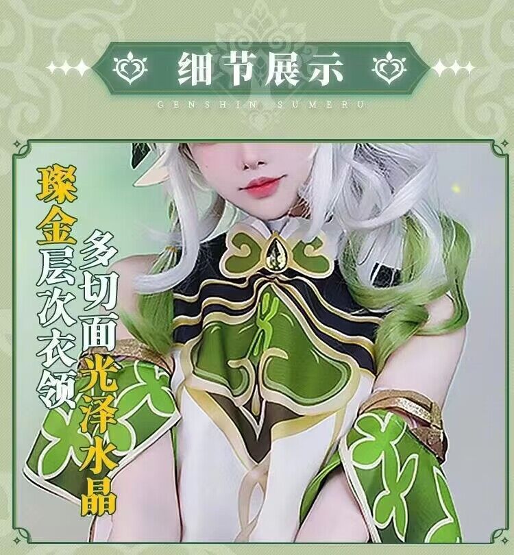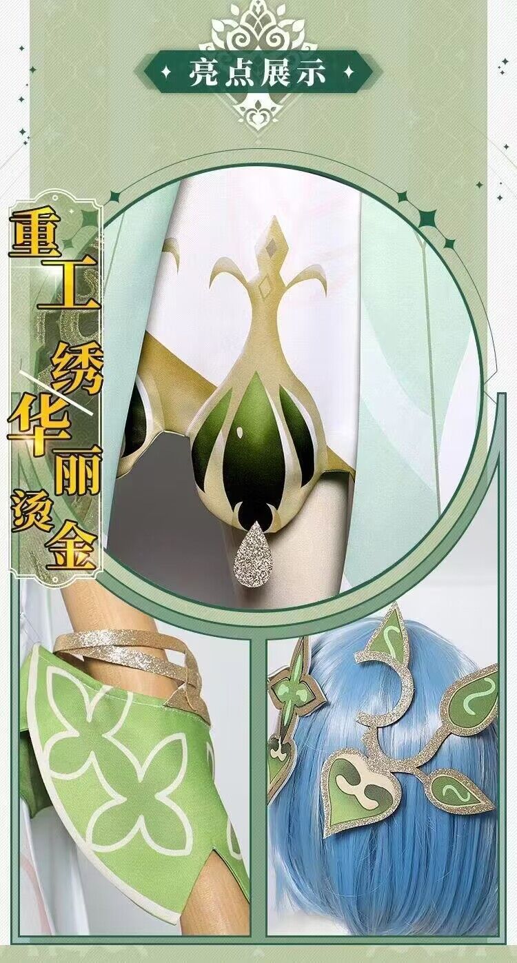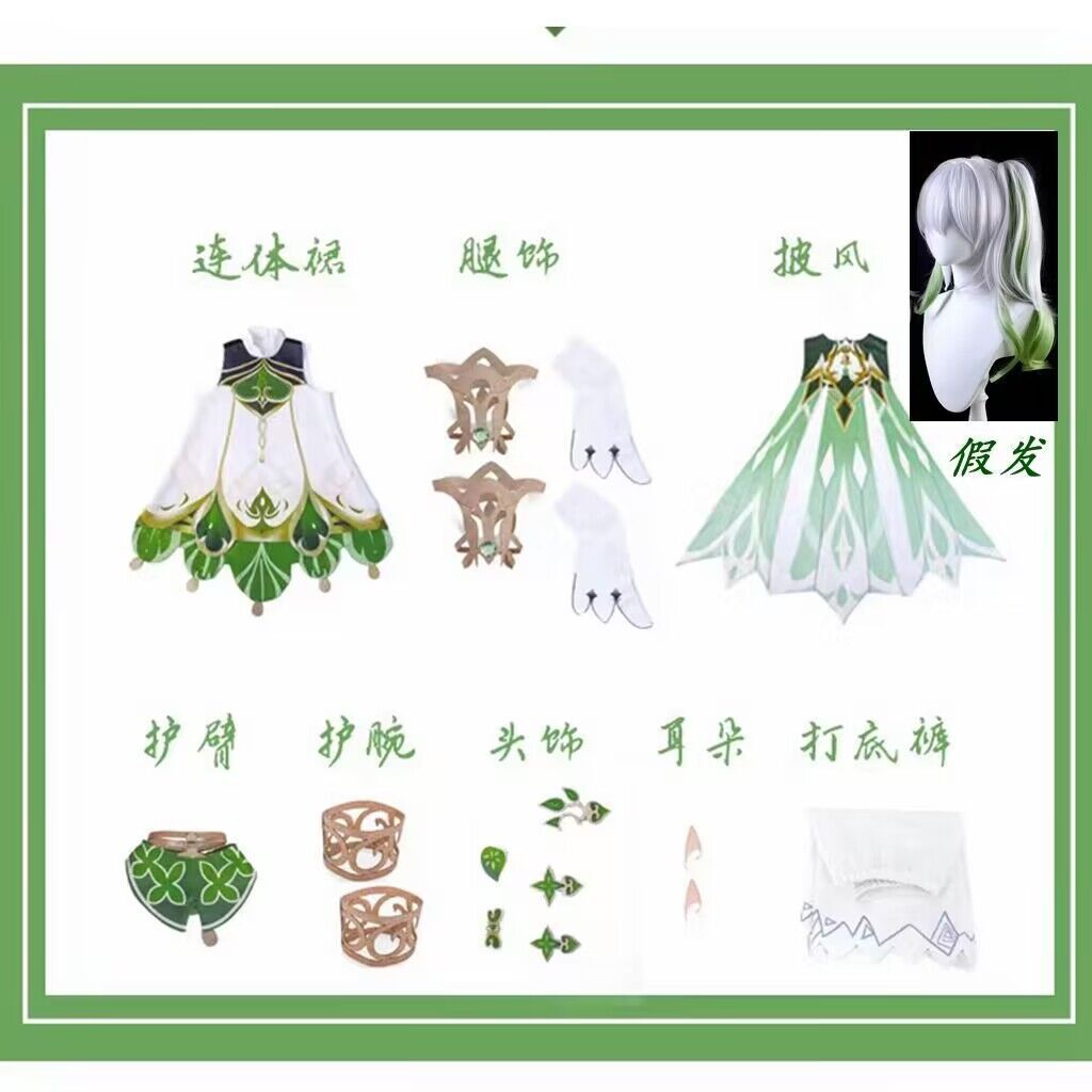 원래 신 잔디 God cos 아동복 nasida 애니메이션 초등학교 학생 cospla Sumeru 작은 길조 가발 재고
