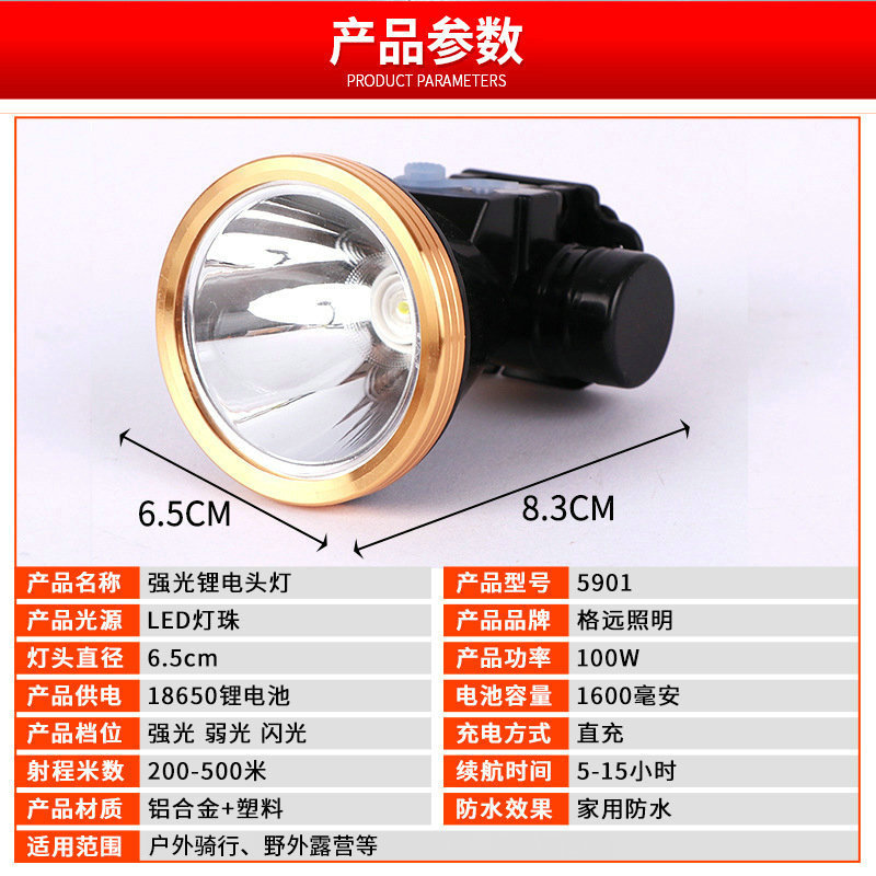 맞춤형 충전식 LED 강한 빛 리튬 배터리 헤드라이트 야외 헤드 낚시 서치 라이트 원격 조명 광부 램프