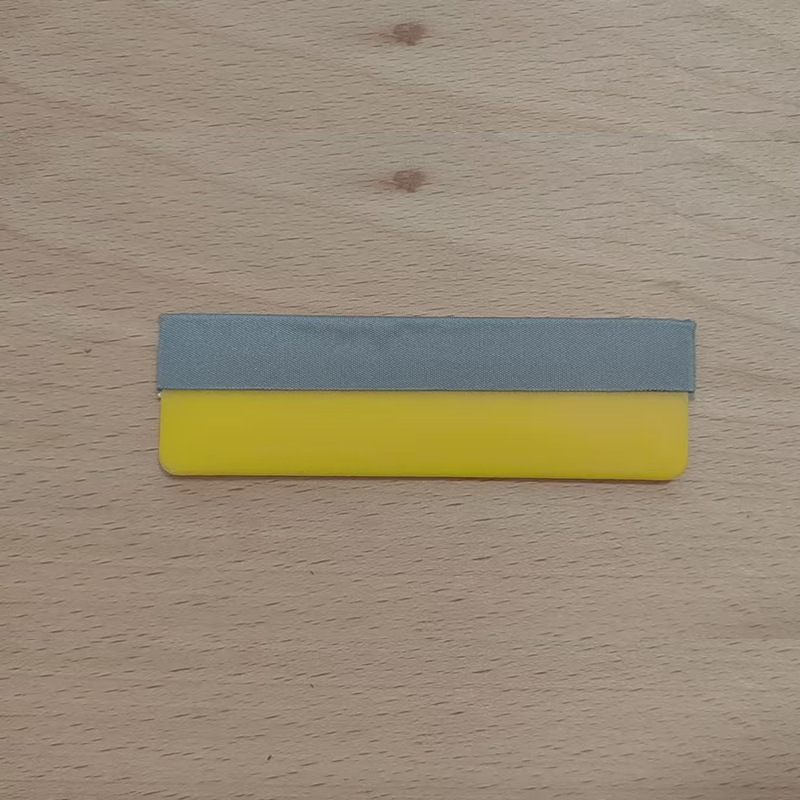 很多客户反馈常规刮板毛刺会刮伤产品,所以选用这款带包布的刮板