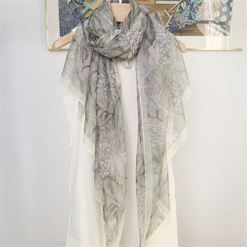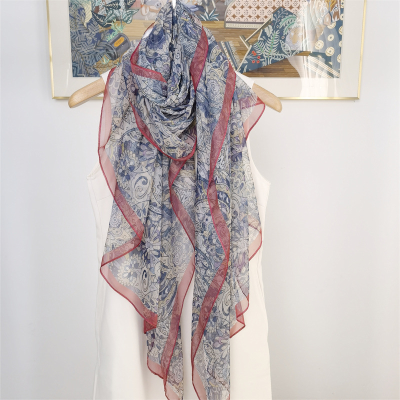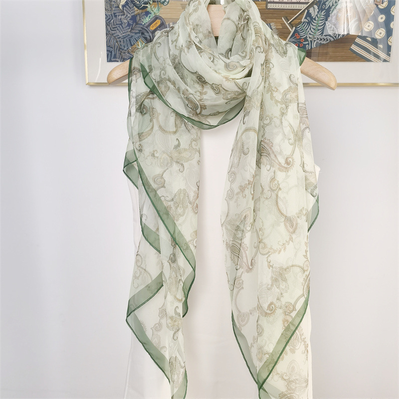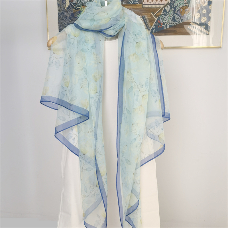 여름 얇은 실크 스카프 여성의 높은 눈 회전 스카프 긴 모든 일치 패션 비치 숄 스카프