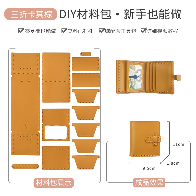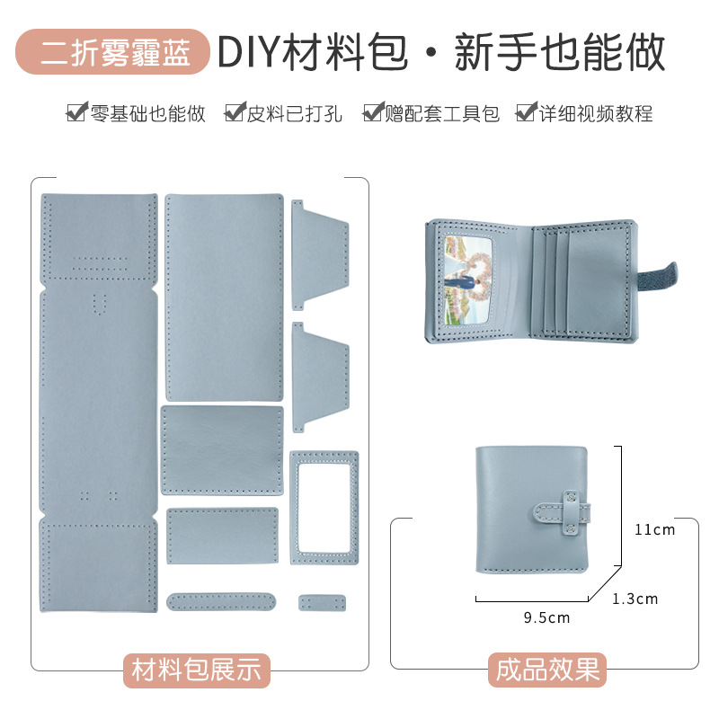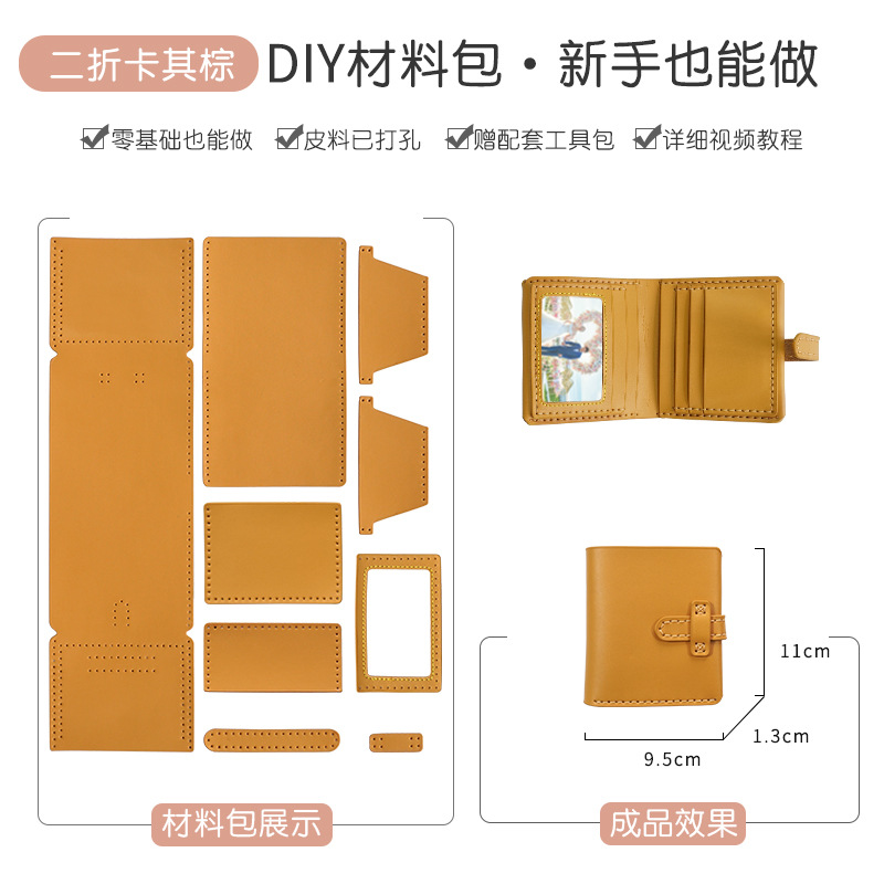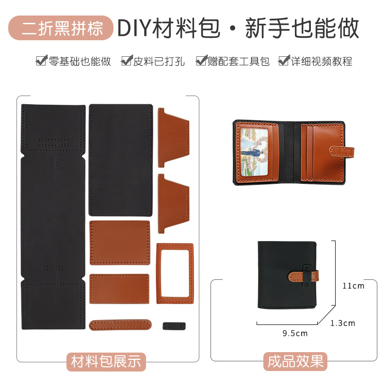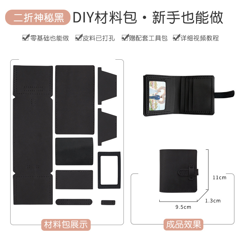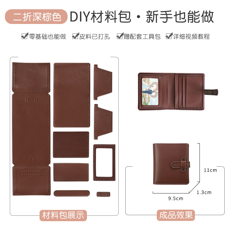 DIY 수제 지갑 리얼 소가죽 핸드 스티치 소재 가방 남성용 짧은 남자 친구 선물 수제 대용량 30% 접기스토어 가기