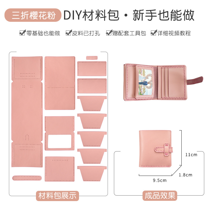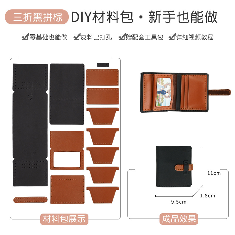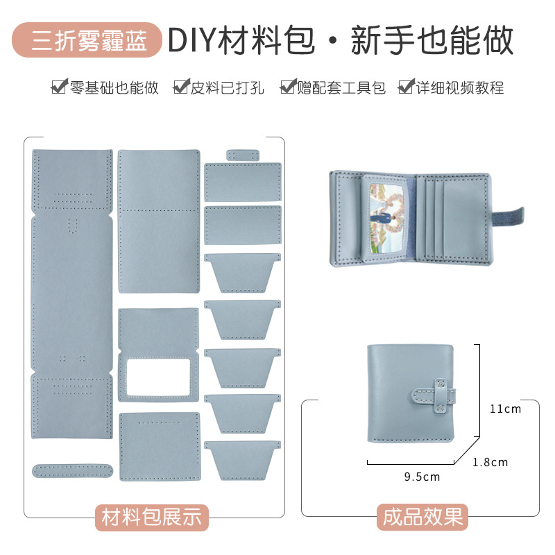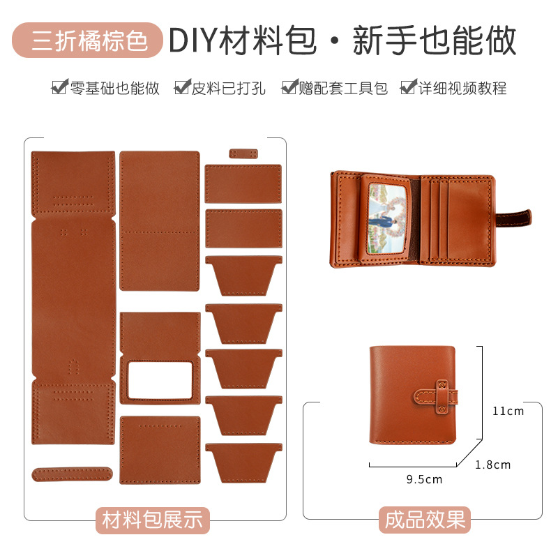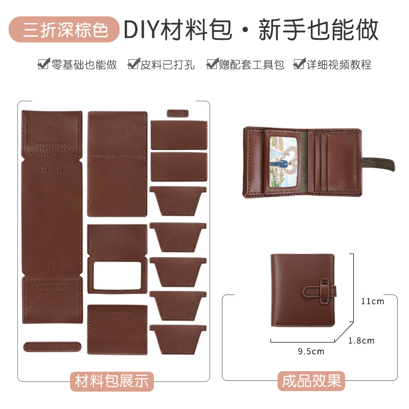 DIY 수제 지갑 리얼 소가죽 핸드 스티치 소재 가방 남성용 짧은 남자 친구 선물 수제 대용량 30% 접기