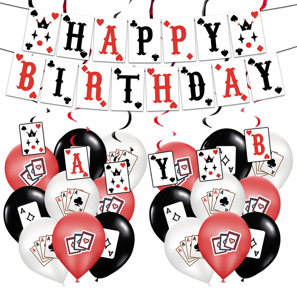 포커 생일 테마 파티 라텍스 풍선 세트 카드 깃발 휴일 용품 장식 소품