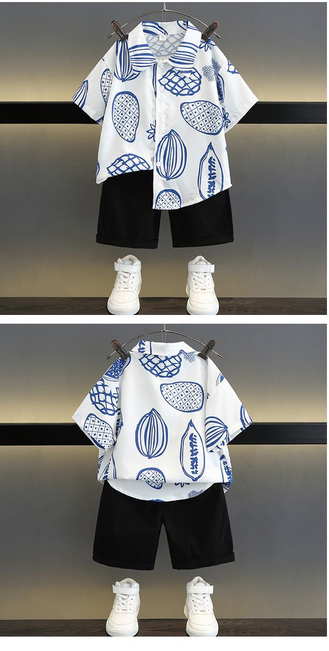 TZ090-suit-Blue 및 흰색-원 버튼 반바지와 반팔 셔츠-여름 티셔츠 아동복스토어 가기