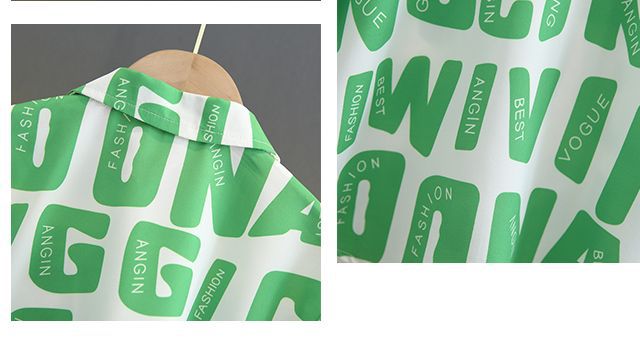 TZ089-suit-two-color 전체 인쇄 된 편지와 하나의 버튼 반바지-아동복스토어 가기