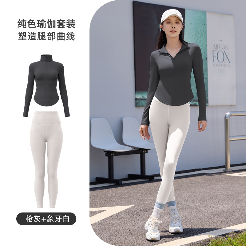 Juyitang 얇은 야외 요가 세트 캐주얼 패션 알몸 빠른 건조 달리기 요가 세트
