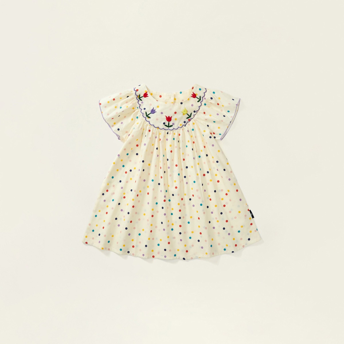 Xingu 아동복 여아 자수 원피스 2023 여름 어린이 컬러 웨이브 도트 순면 비행 슬리브 공주 스커트 크로스 보더스토어 가기