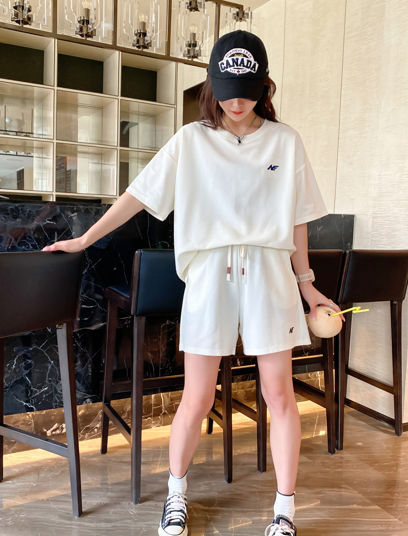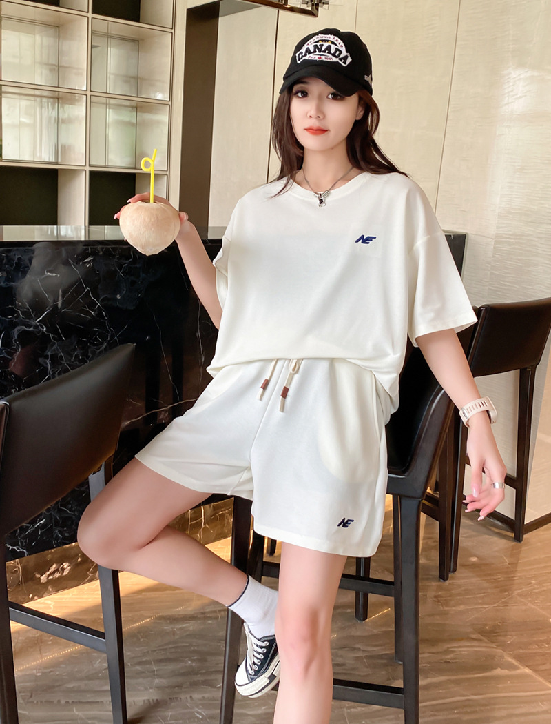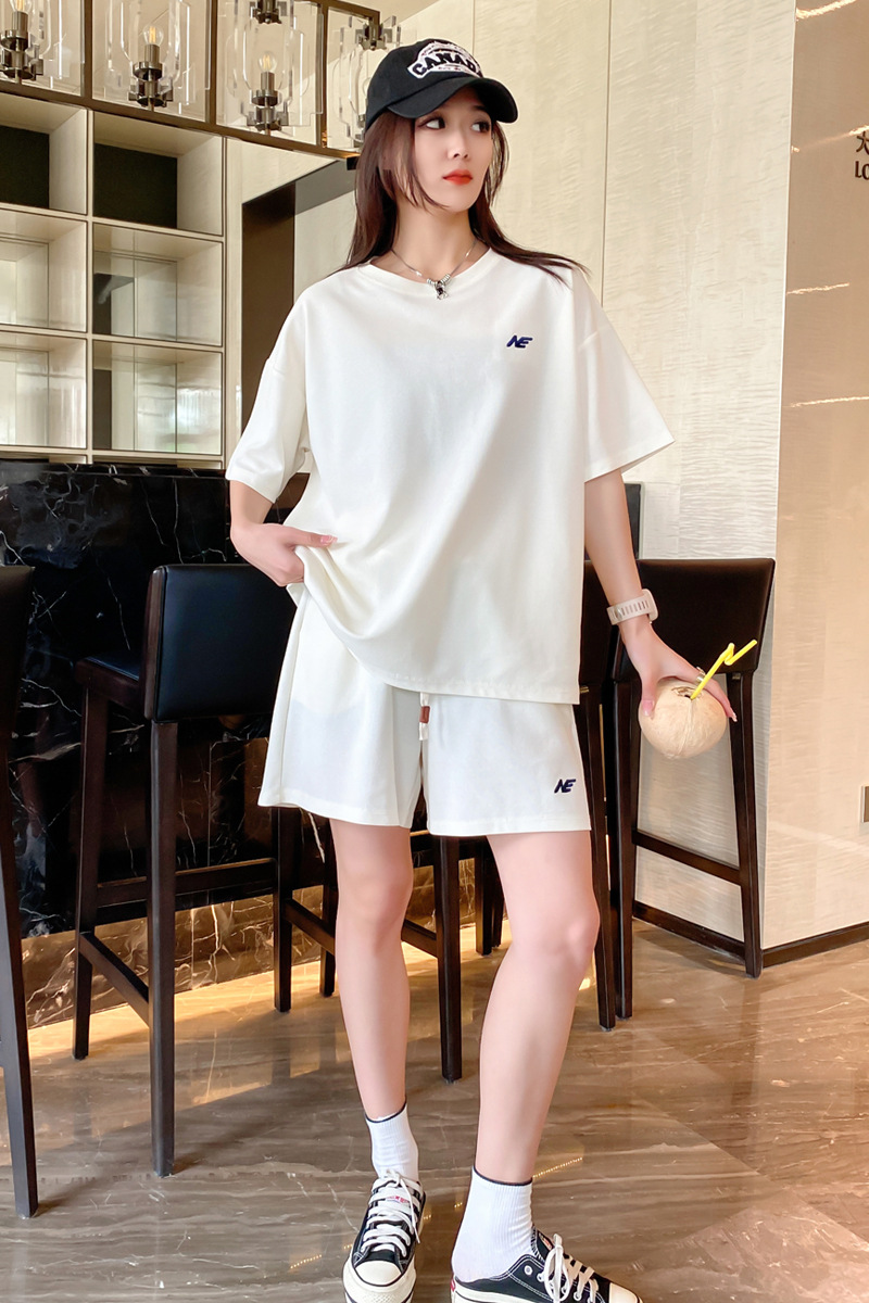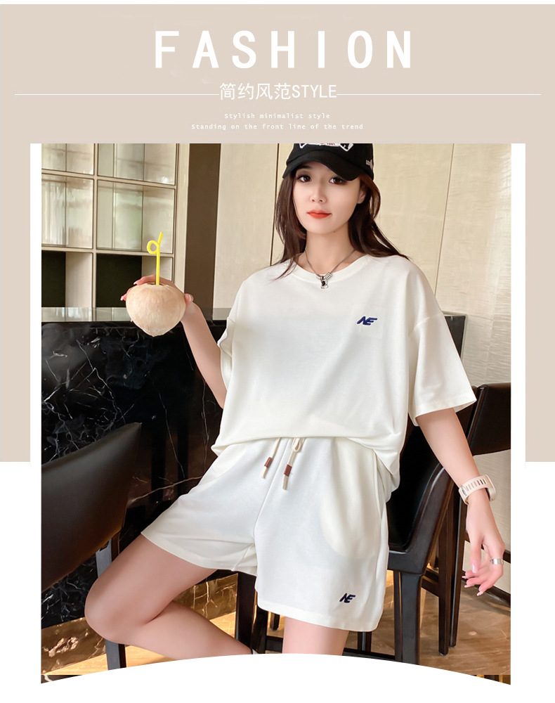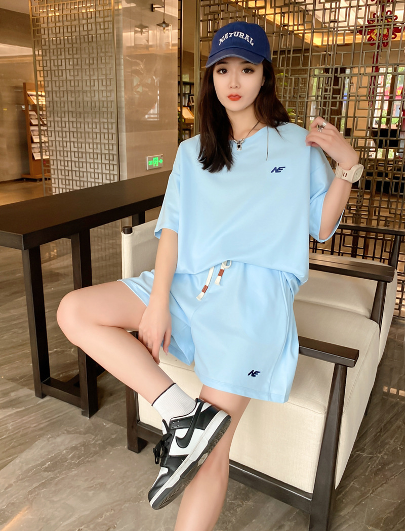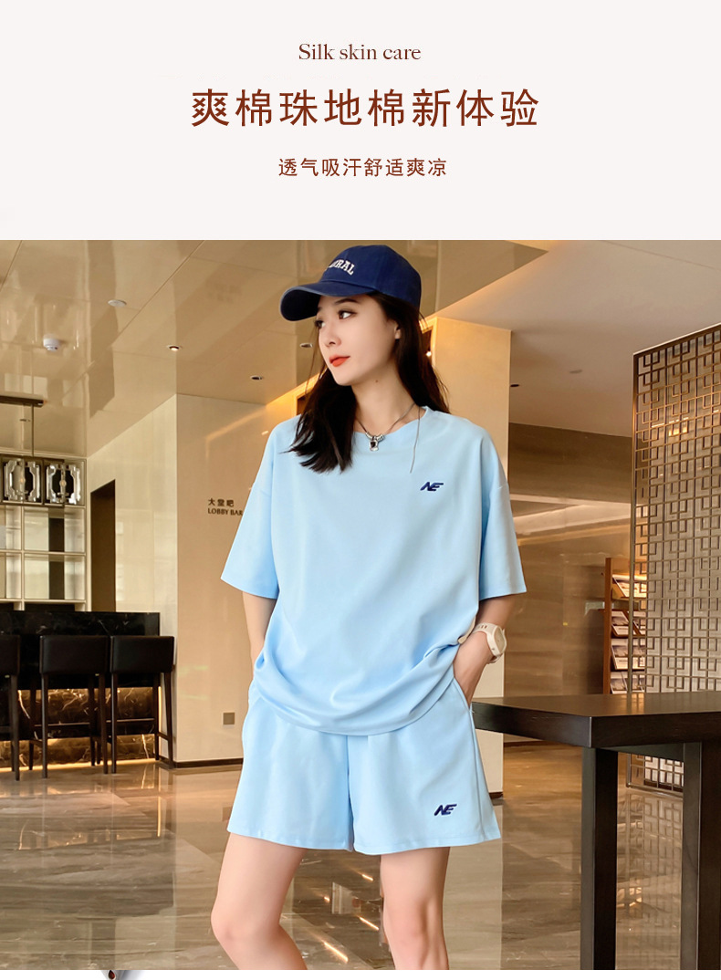 스포츠 캐주얼 세트 여자의 여름 티셔츠 얇은 새로운 패션 반팔 반바지 투피스 느슨한 슬리밍 여름 옷스토어 가기