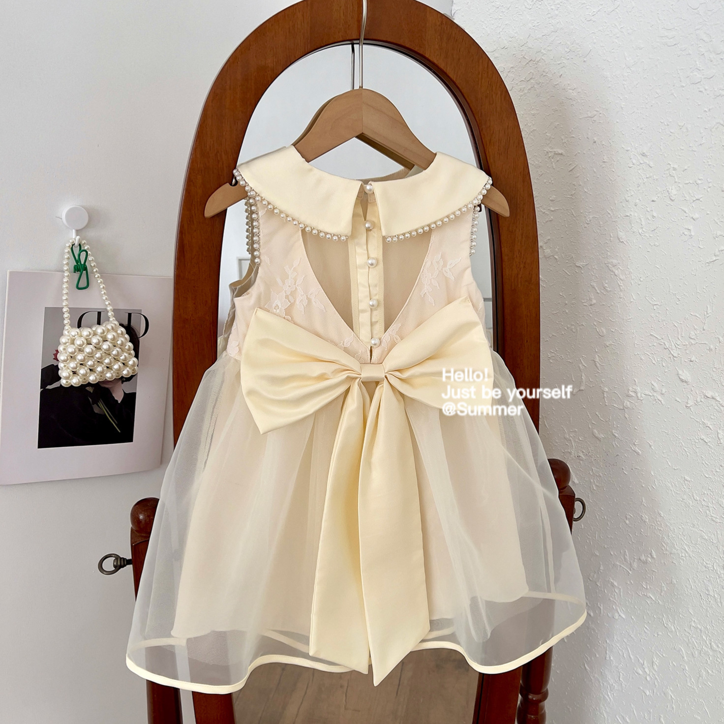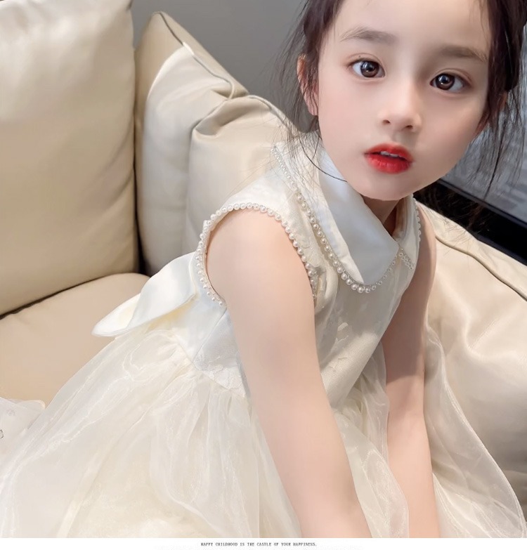 여자 얇은 원피스 여름 의상 베일 원피스 인터넷 인기있는 아기 공주 원피스 어린이 민소매 스커트 외국 스타일