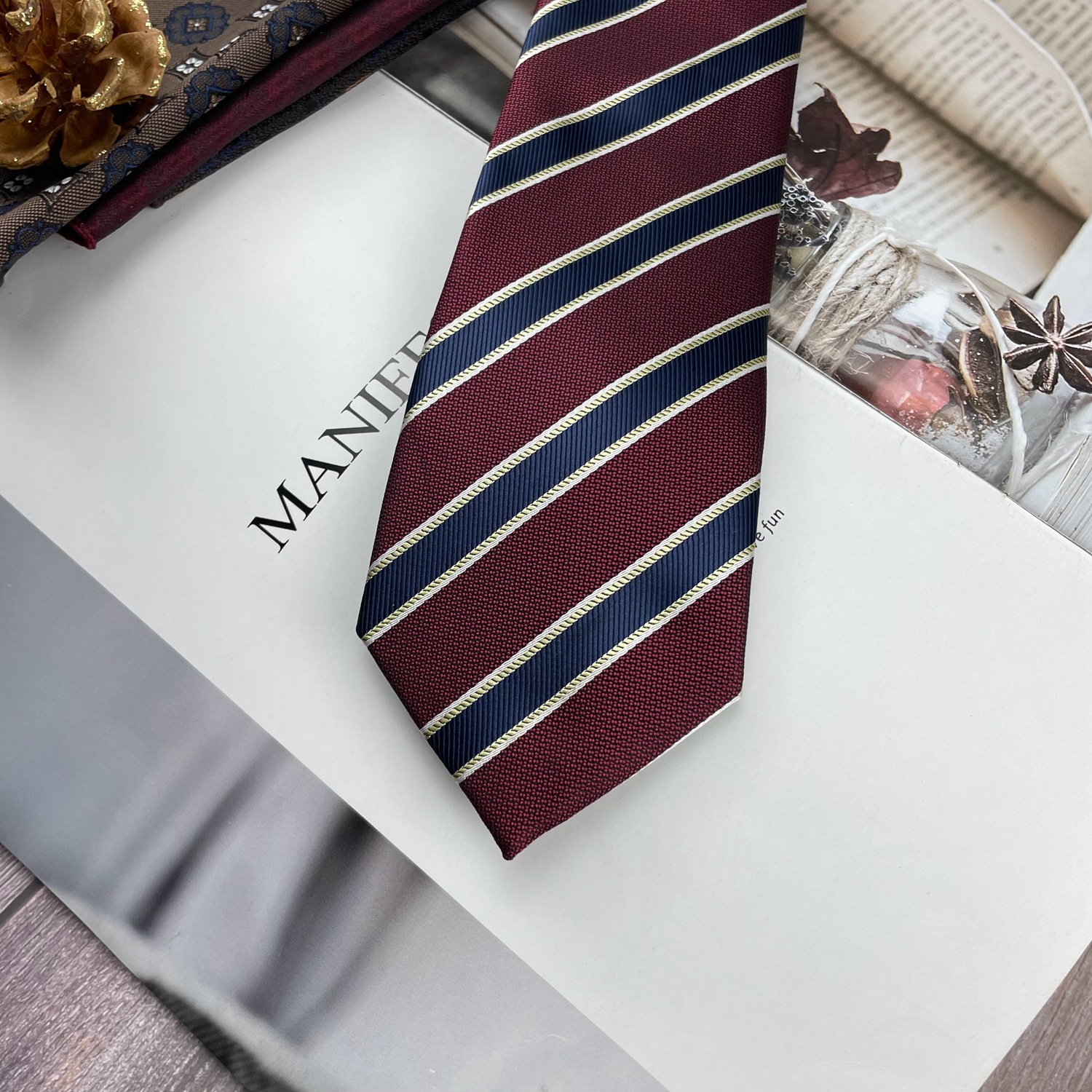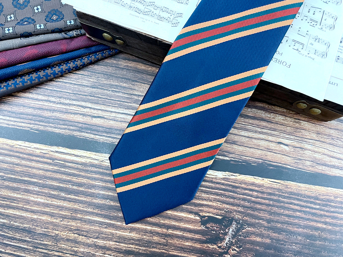 • 버건디 블루 옐로우 스트라이프 넥타이 * 8cm