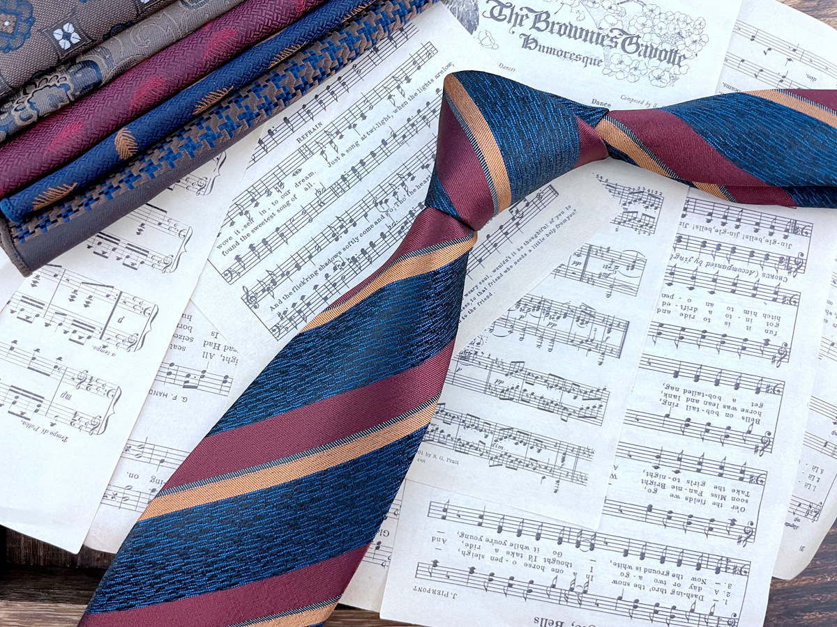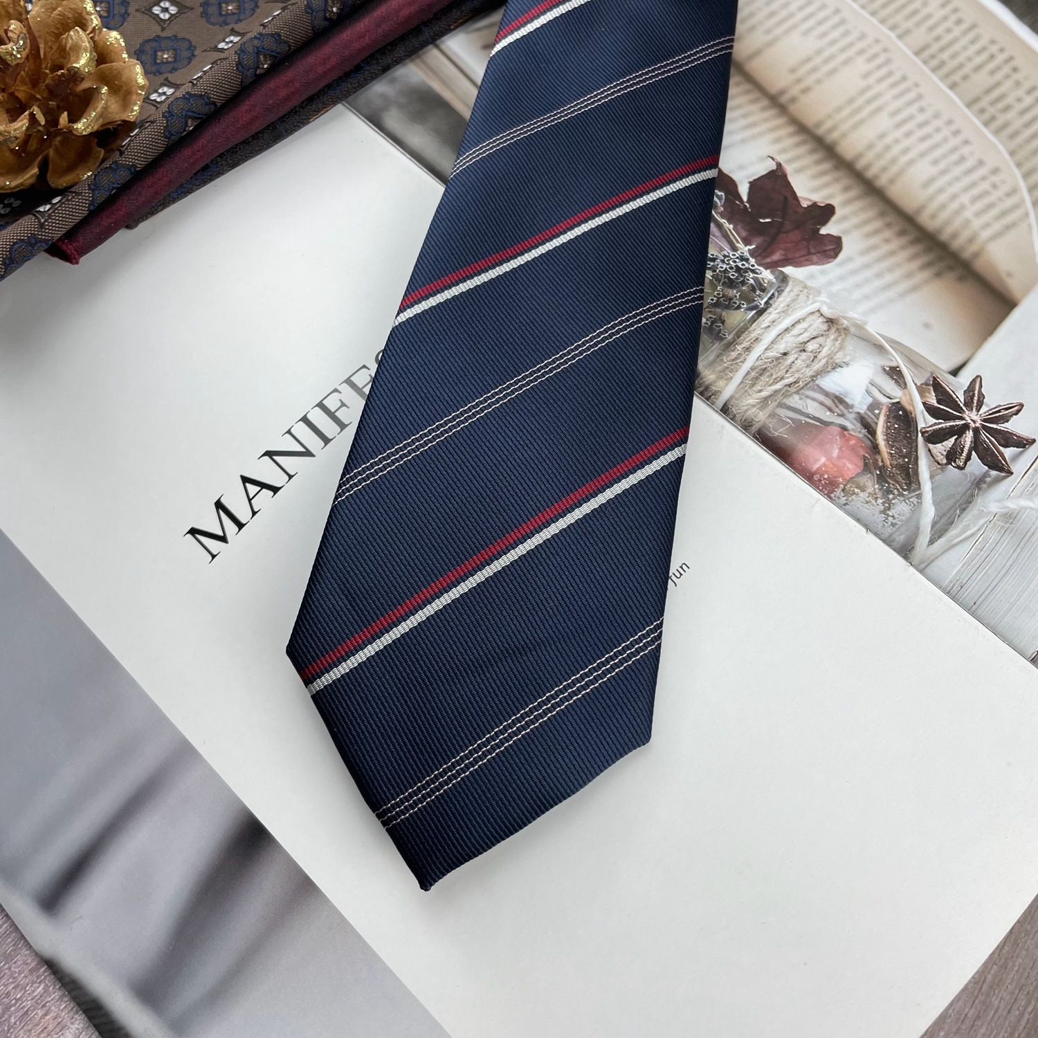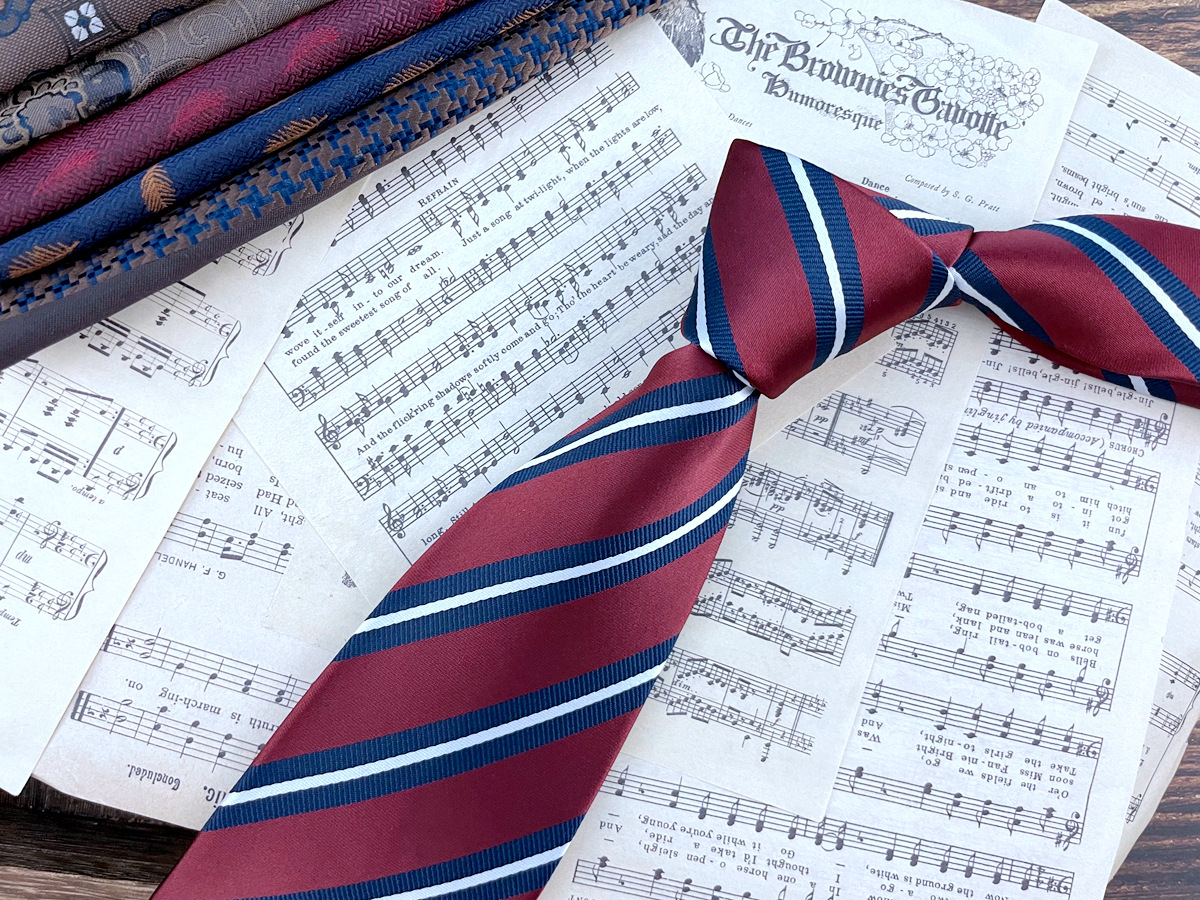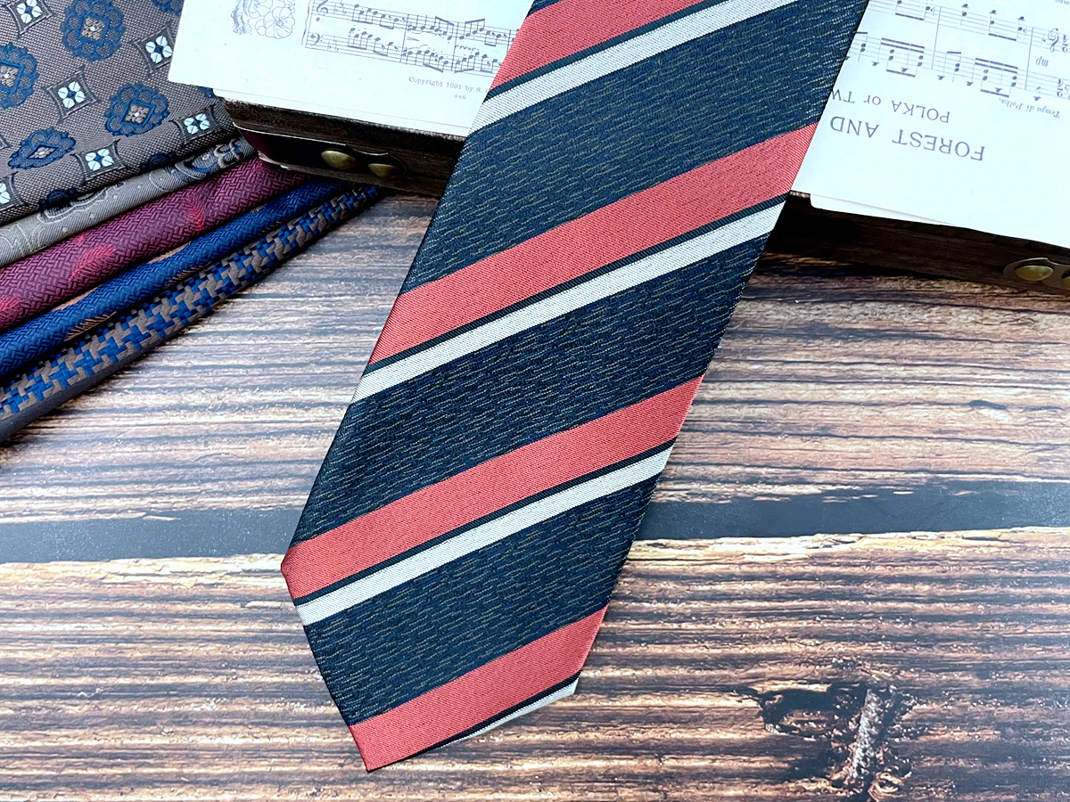 • 버건디 네이비 스트라이프 넥타이 * 8cm