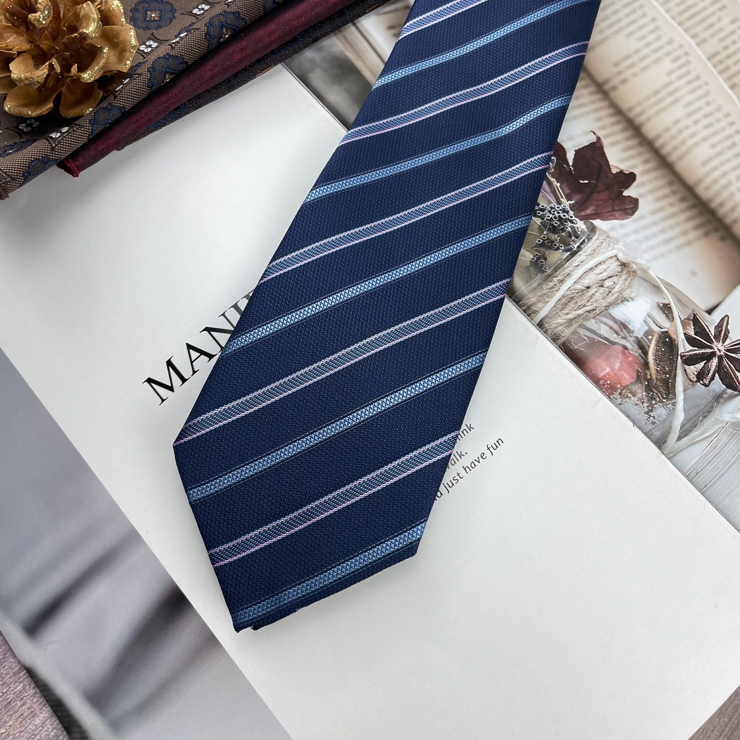 • 네이비 파우더 스트라이프 타이 * 8cm