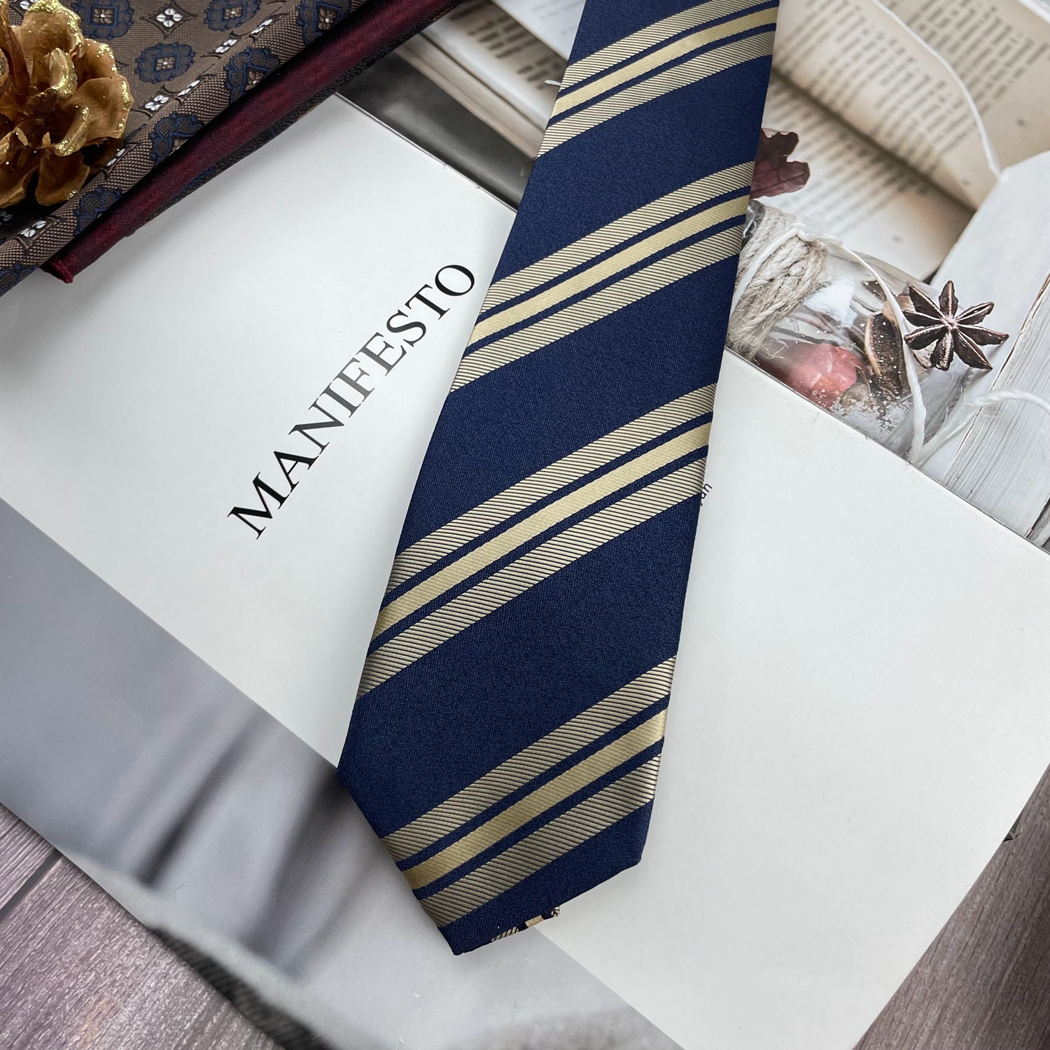 • 네이비 노란색 줄무늬 넥타이 * 8cm