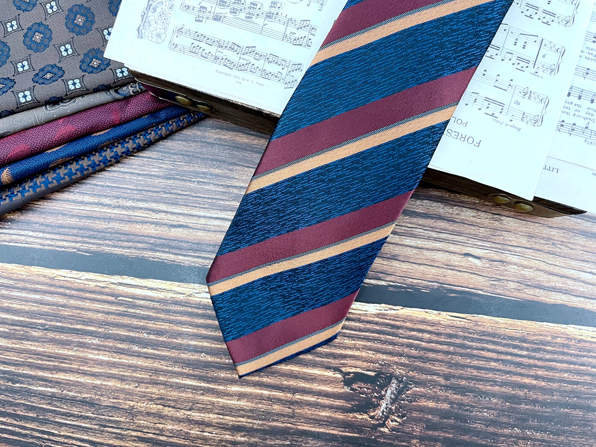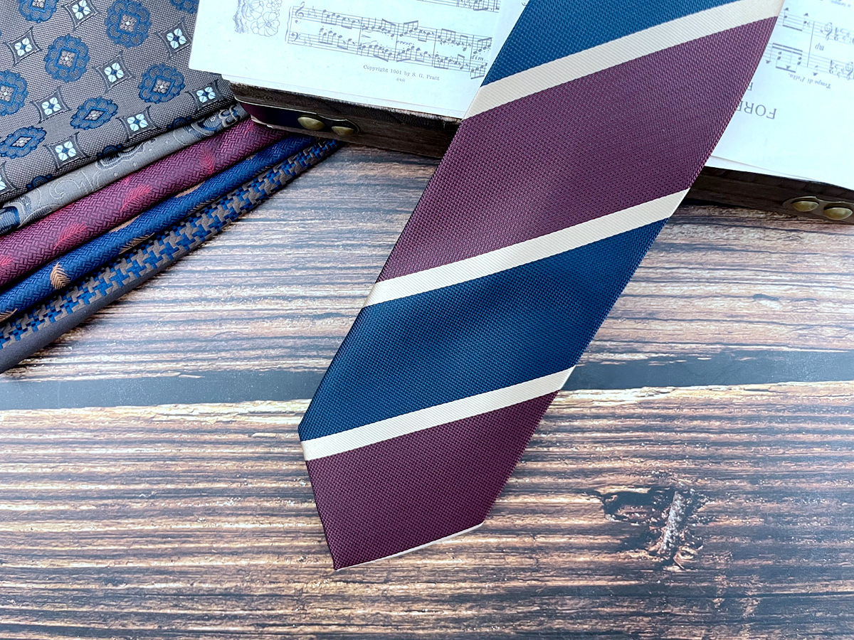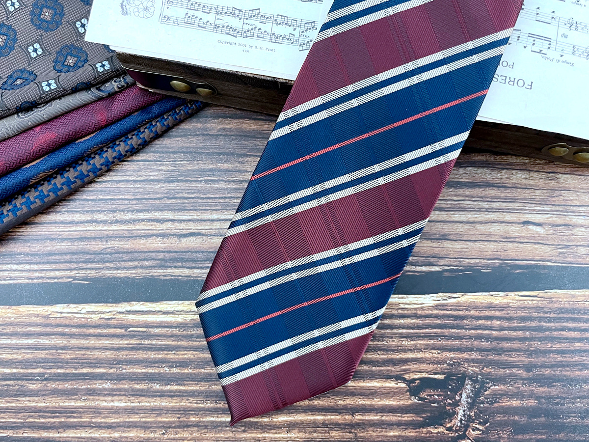 • 버건디 및 파란색 줄무늬 넥타이 * 8cm