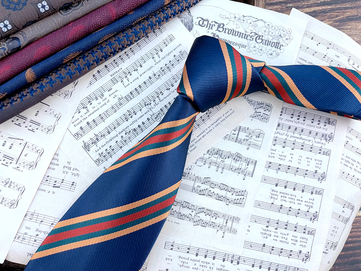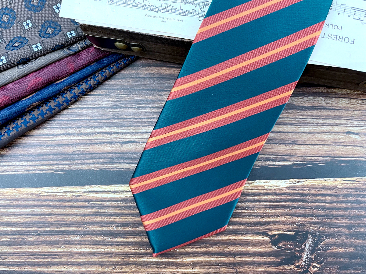 • 녹색 주황색 줄무늬 넥타이 * 8cm