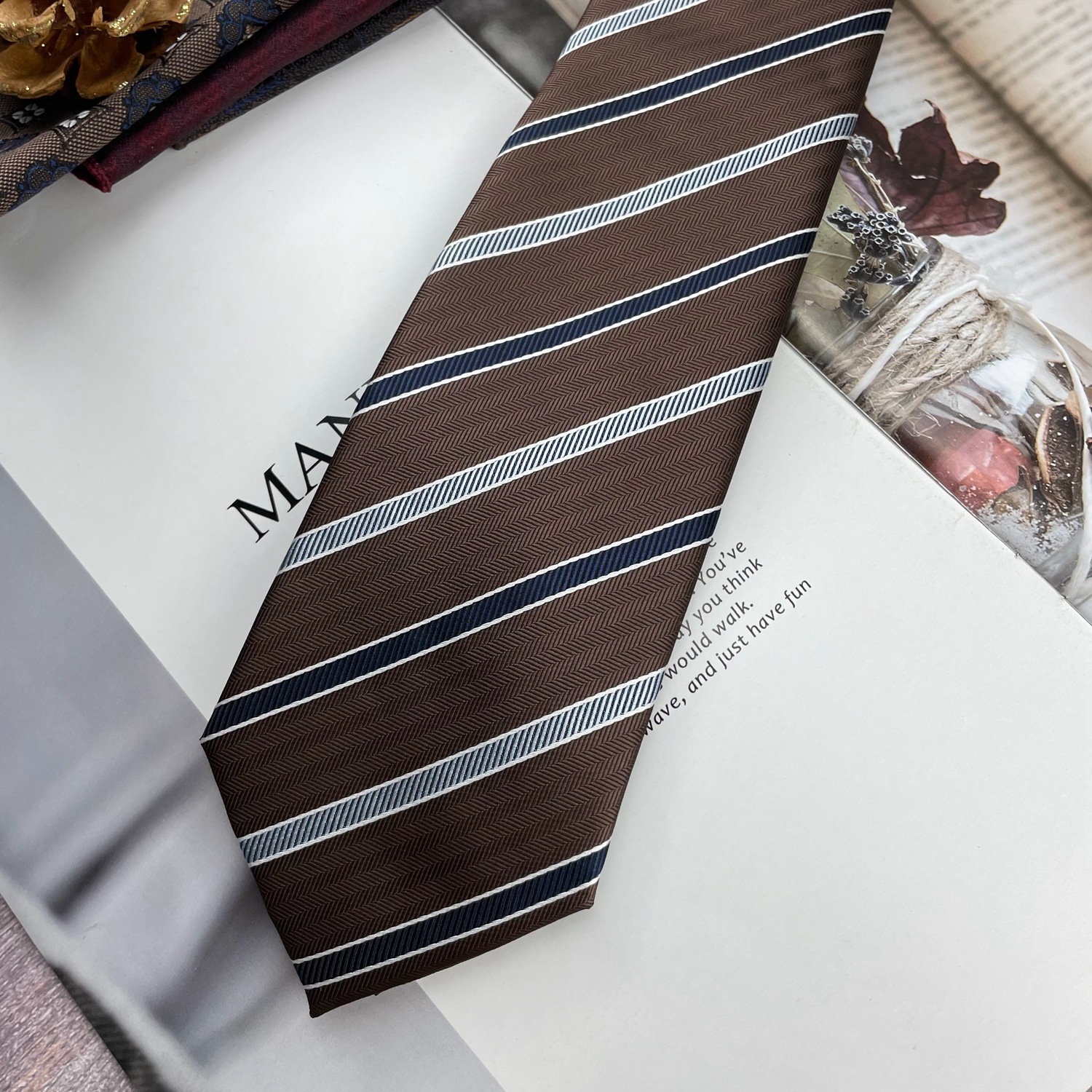 • 다크 브라운 블루 스트라이프 넥타이 * 8cm