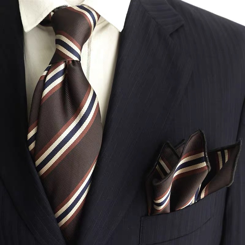 • 다크 브라운 두꺼운 줄무늬 넥타이 손 * 8cm