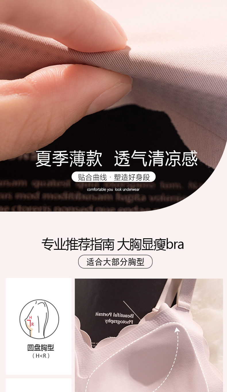 원활한 속옷 여성의 여름 얇은 큰 가슴 작은 아니 강철 반지 다시 모여 통합 고정 컵 수면 브라스토어 가기