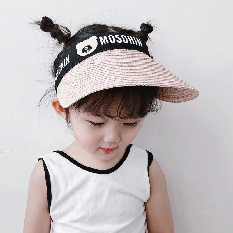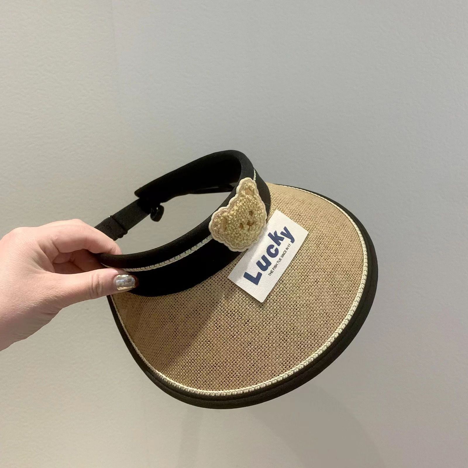 어린이 태양 보호 태양 모자 만화 곰 여름 소년과 소녀 큰 테두리 빈 모자 롤 태양 모자스토어 가기