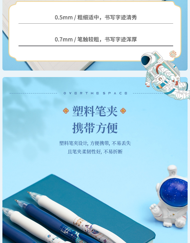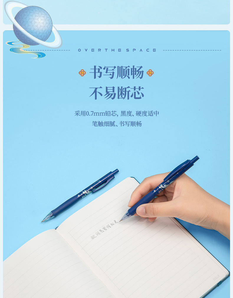델리 문구 활동 연필은 스카이 스페이스 테마 학생들에게 0.5/0.7mm 만화 자동 펜을 쓰도록 요청했습니다.스토어 가기