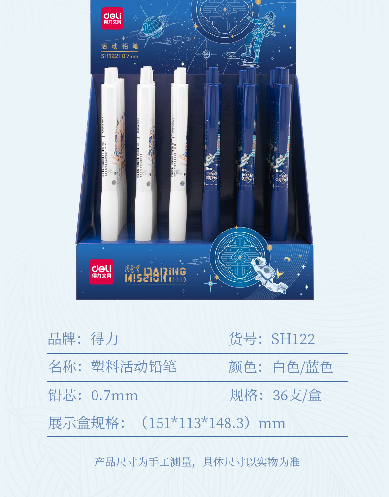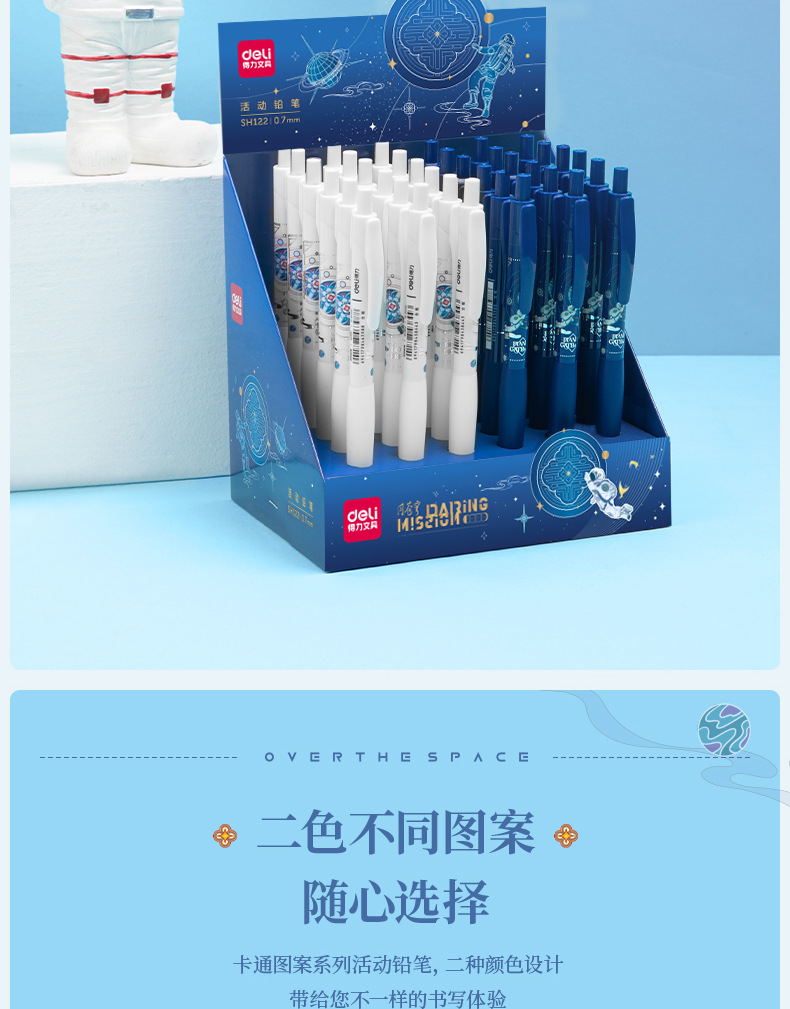델리 문구 활동 연필은 스카이 스페이스 테마 학생들에게 0.5/0.7mm 만화 자동 펜을 쓰도록 요청했습니다.