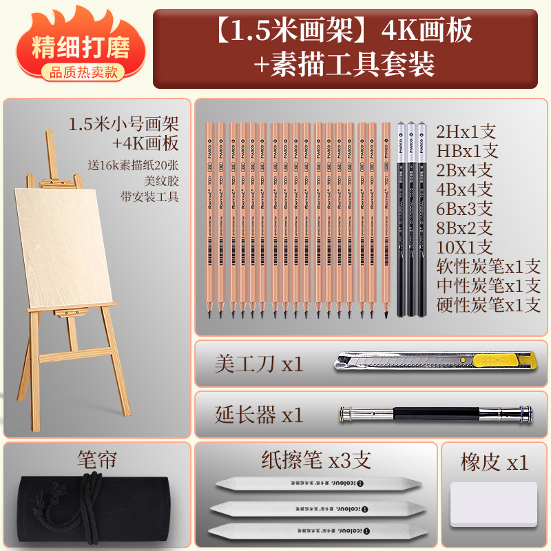 • [경제 베스트 셀러] 1.5 m 스몰 사이즈 이젤 + 4K 스케치패드 (선물)