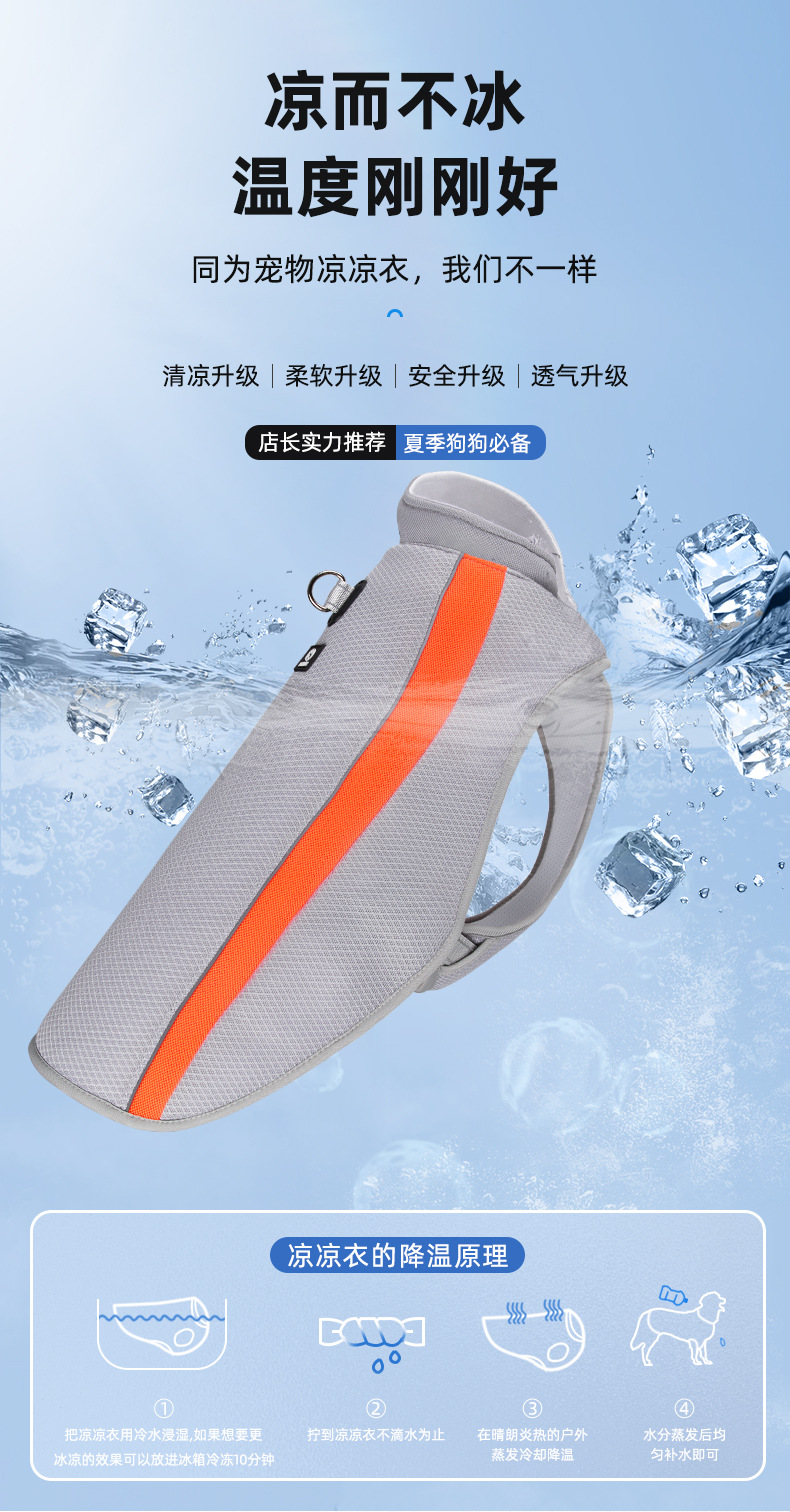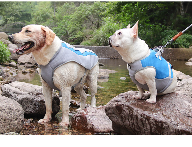 새 개 옷 아이스 실크 열사병 예방 시원한 옷 통기성 냉각 조끼 여름 애완 동물 옷 재고 도매스토어 가기