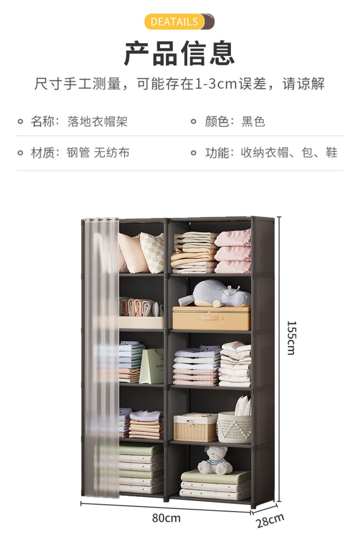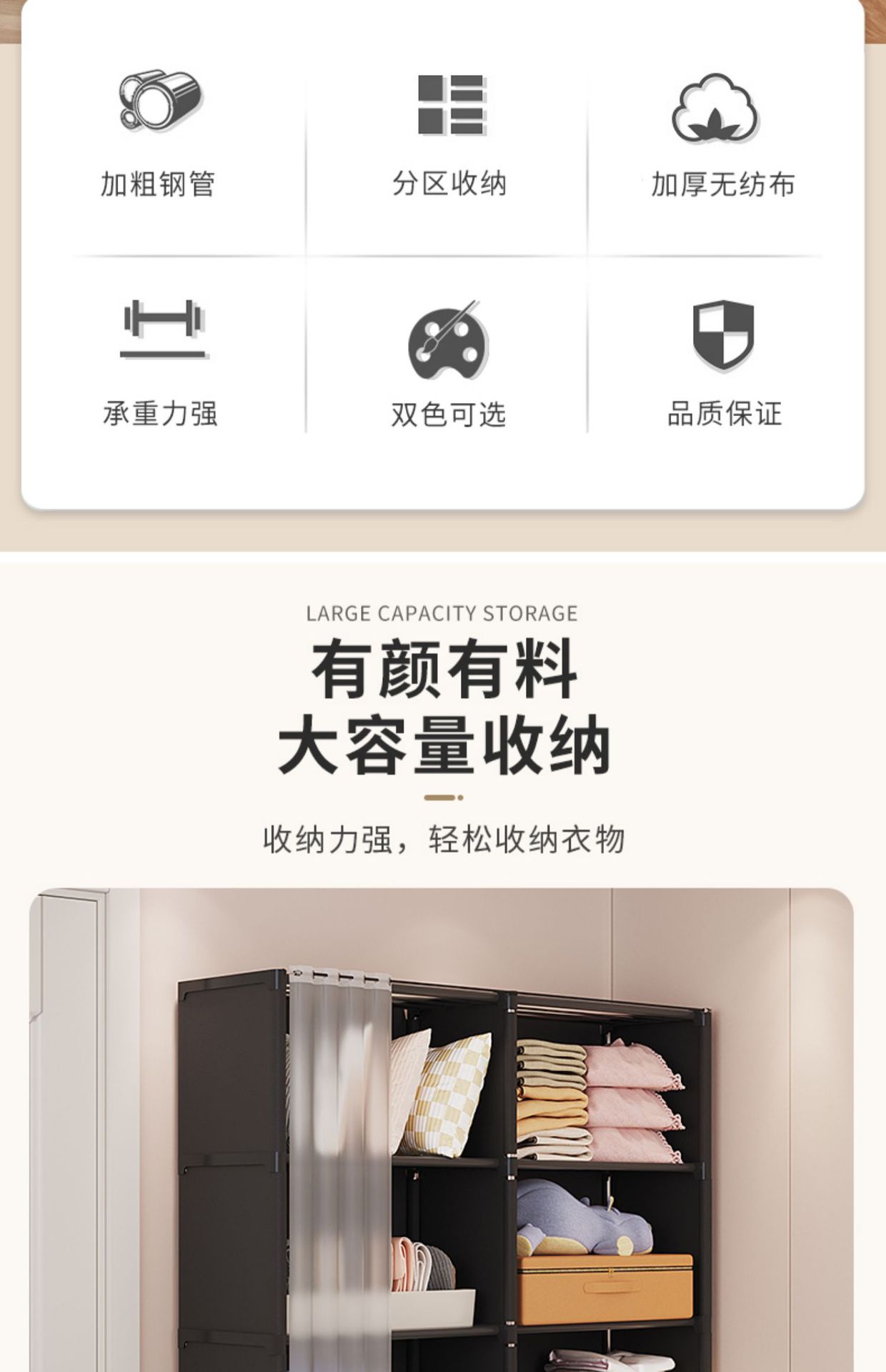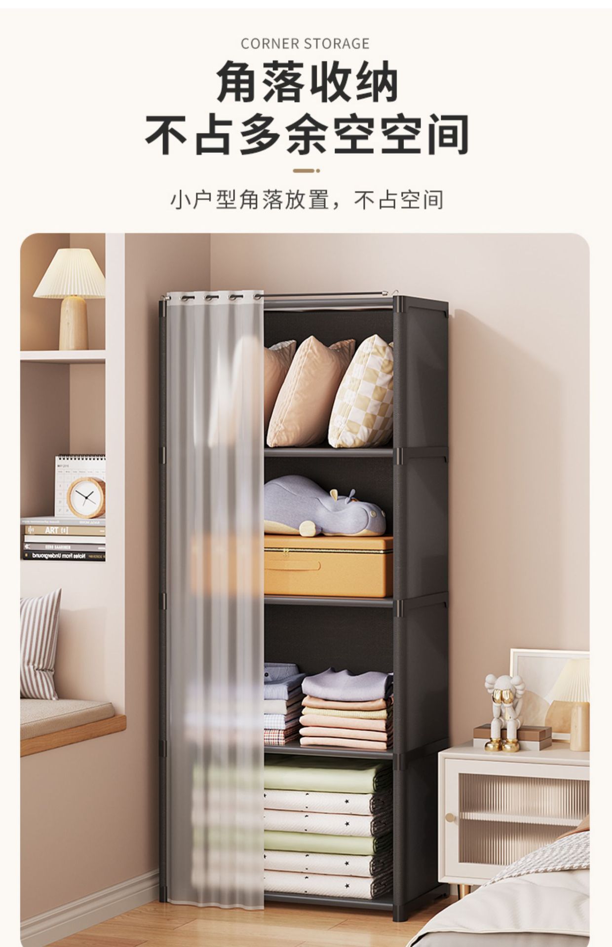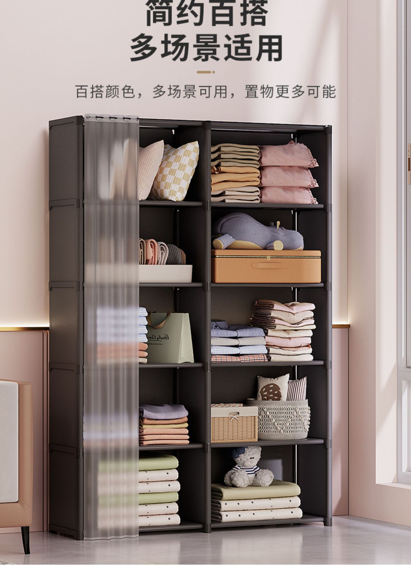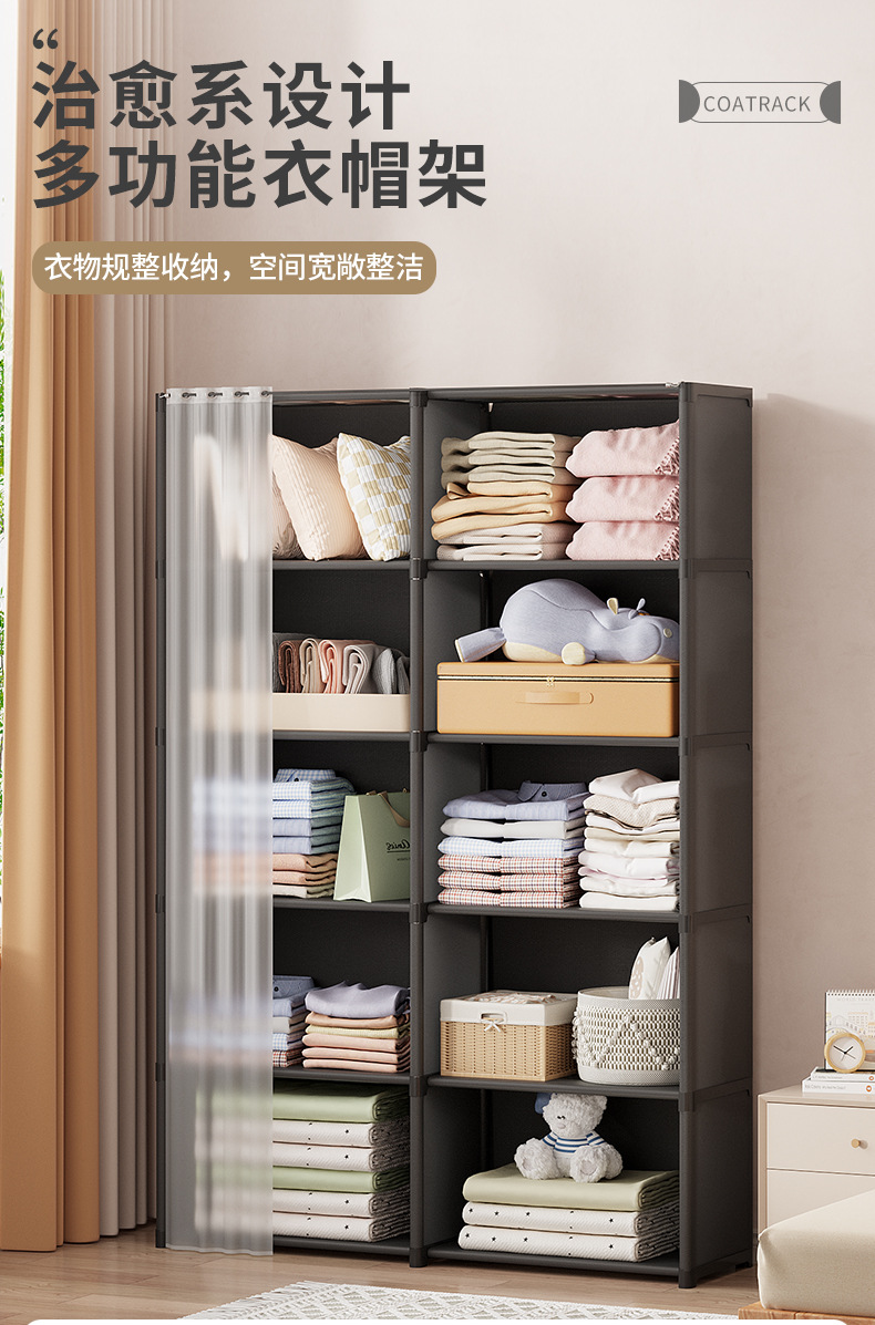 간단한 옷장 임대 주택 가정용 다층 보관 두꺼운 강철 파이프 어셈블리 강화 간단한 옷장 계층화 스토리지스토어 가기