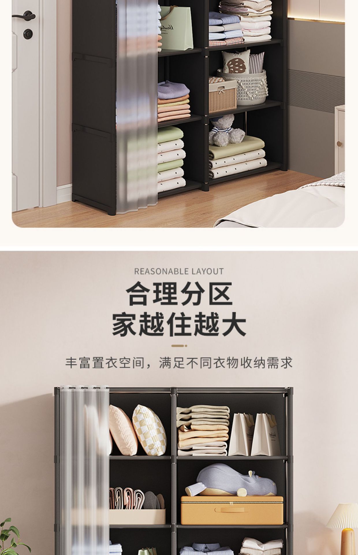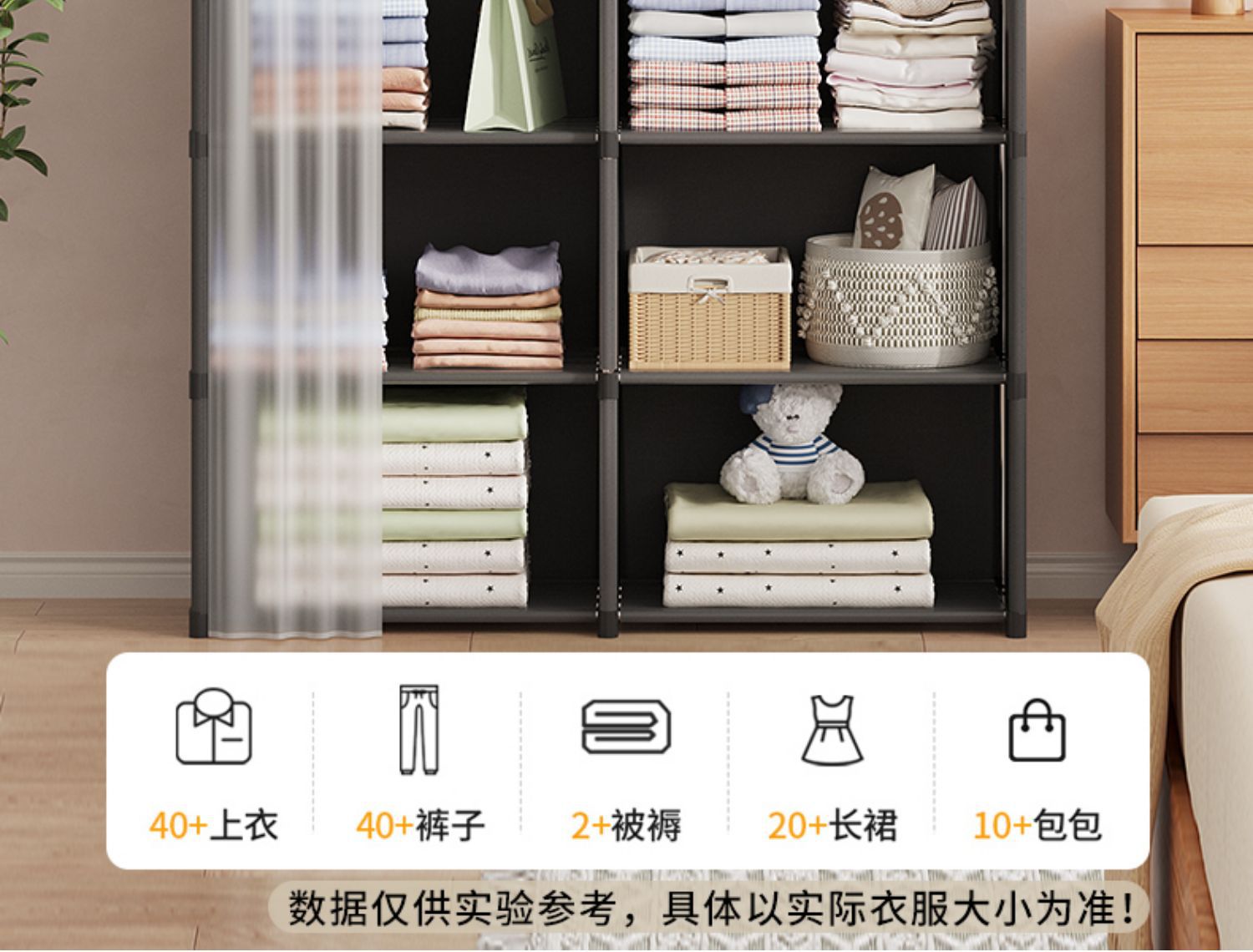 간단한 옷장 임대 주택 가정용 다층 보관 두꺼운 강철 파이프 어셈블리 강화 간단한 옷장 계층화 스토리지