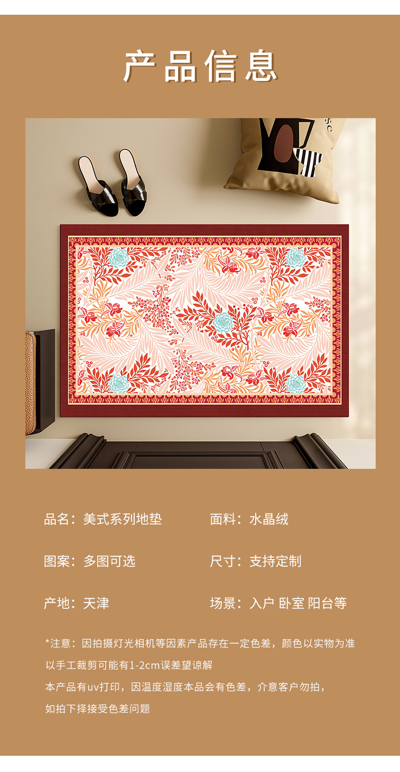 크로스 보더 레트로 라이트 럭셔리 바닥 매트 가정용 현관 내마모성 바닥 매트 화장실 문 흡수성 바닥 매트 재고 도매