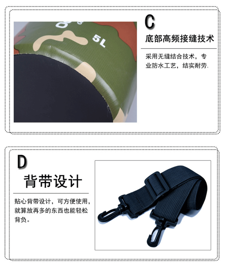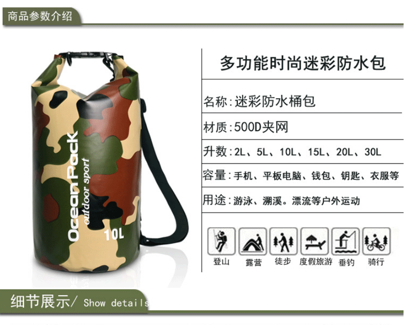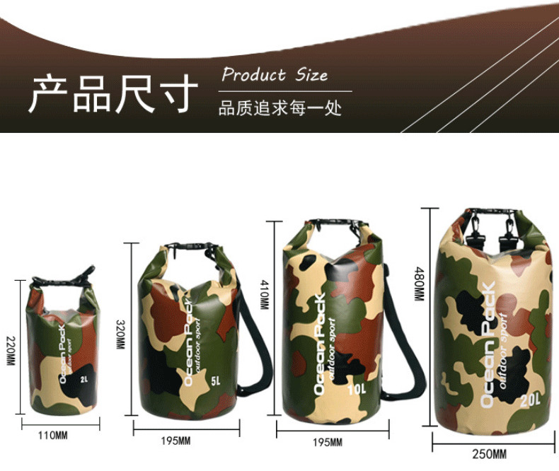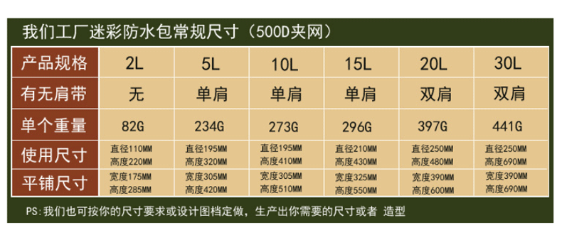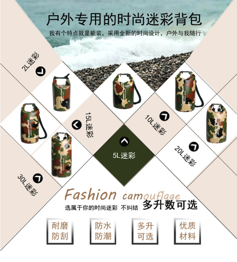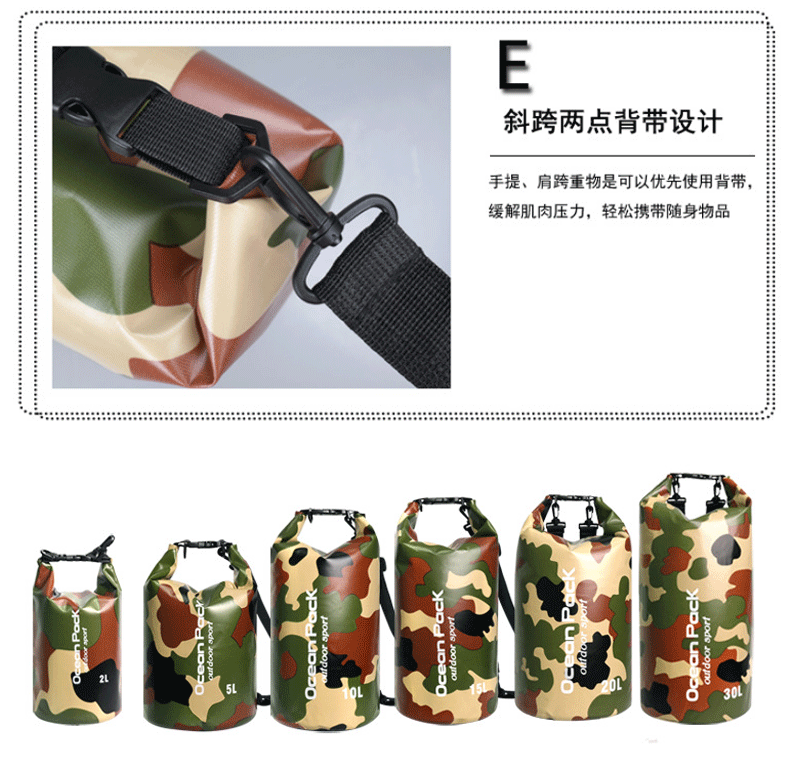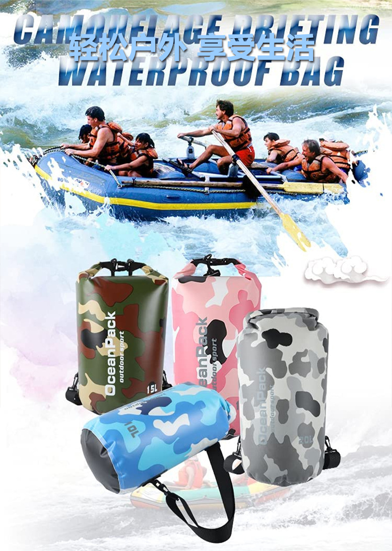 공장 직접 수영 가방 위장 가방 PVC 메쉬 방수 버킷 가방 방수 가방 비치 래프팅 보관 가방