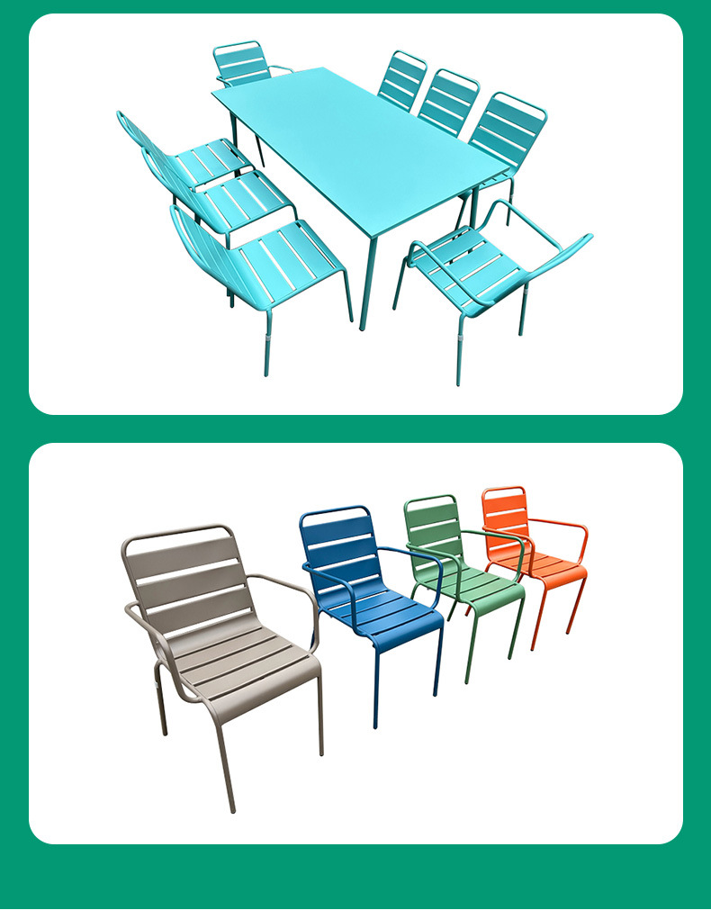 국경 간 간단한 테라스 야외 캐주얼 철 테이블 및 의자 정원 야외 저녁 식사 안뜰 테이블 및 의자 금속 캐주얼 다이닝 테이블