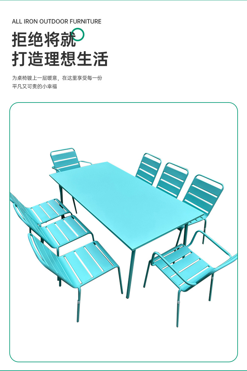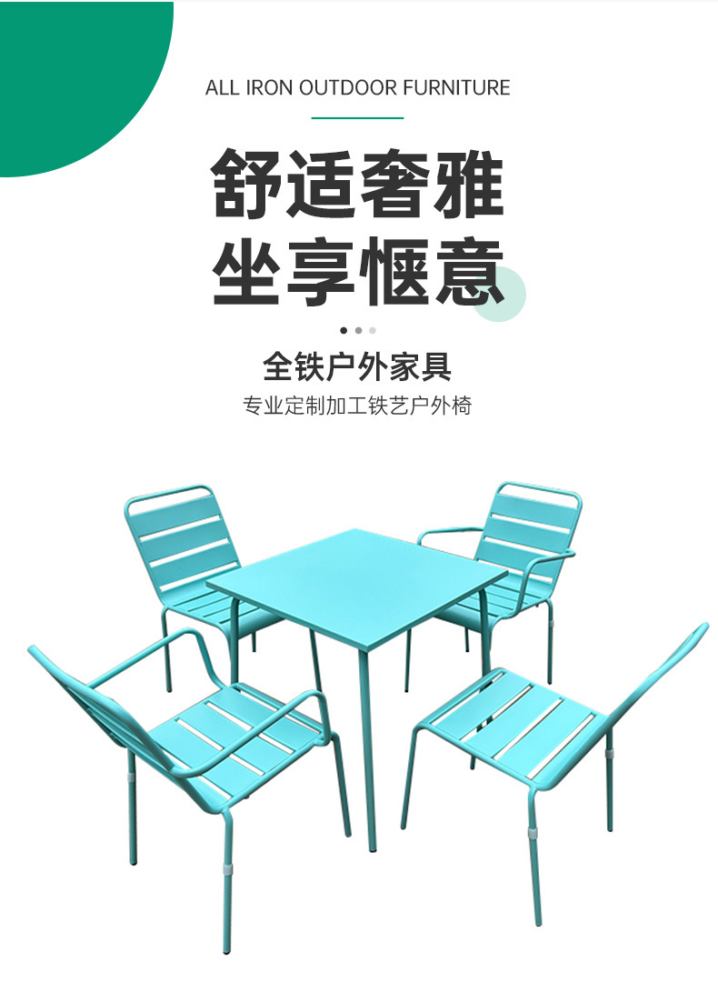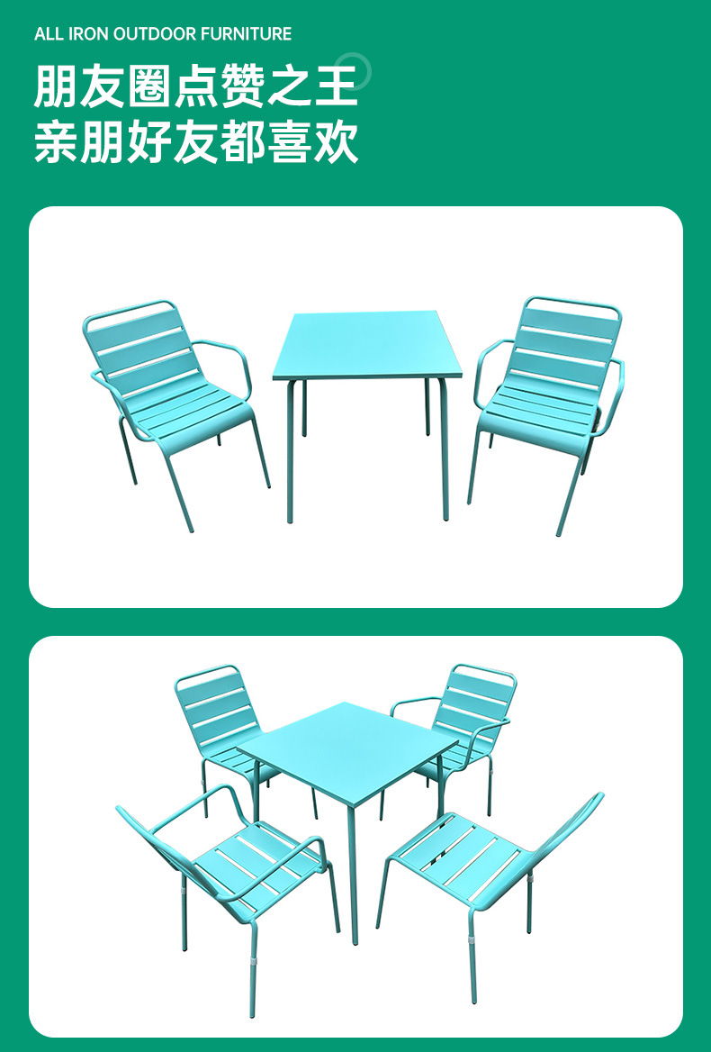 국경 간 간단한 테라스 야외 캐주얼 철 테이블 및 의자 정원 야외 저녁 식사 안뜰 테이블 및 의자 금속 캐주얼 다이닝 테이블스토어 가기