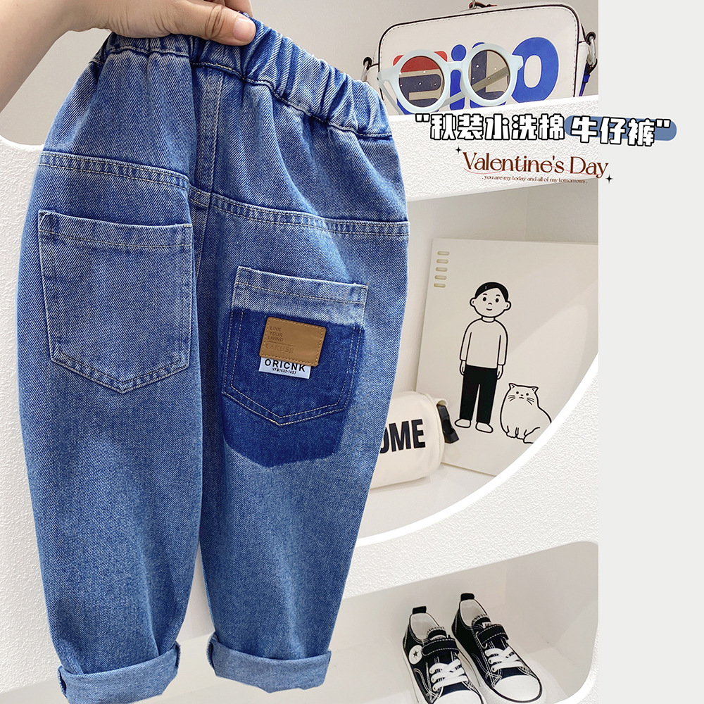 소년 한국 바지 봄, 가을 2025 새로운 아기 어린이 청바지 중대형 어린이 가을 캐주얼 바지 유행스토어 가기