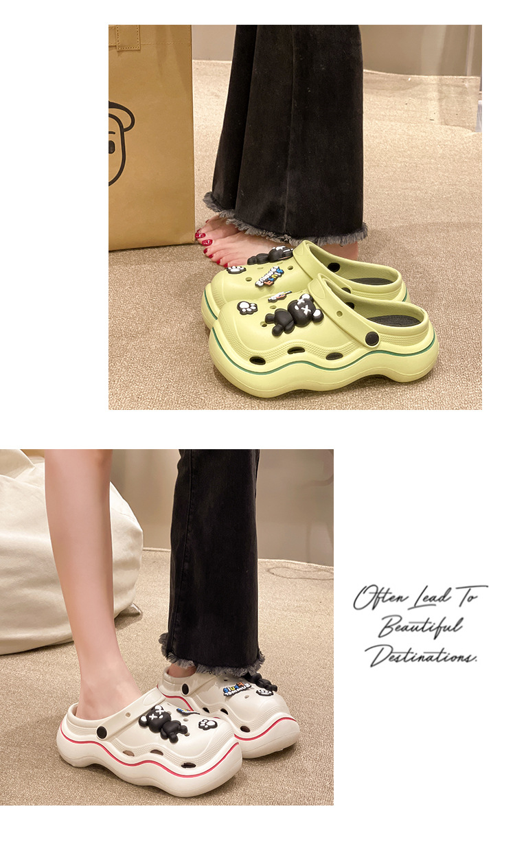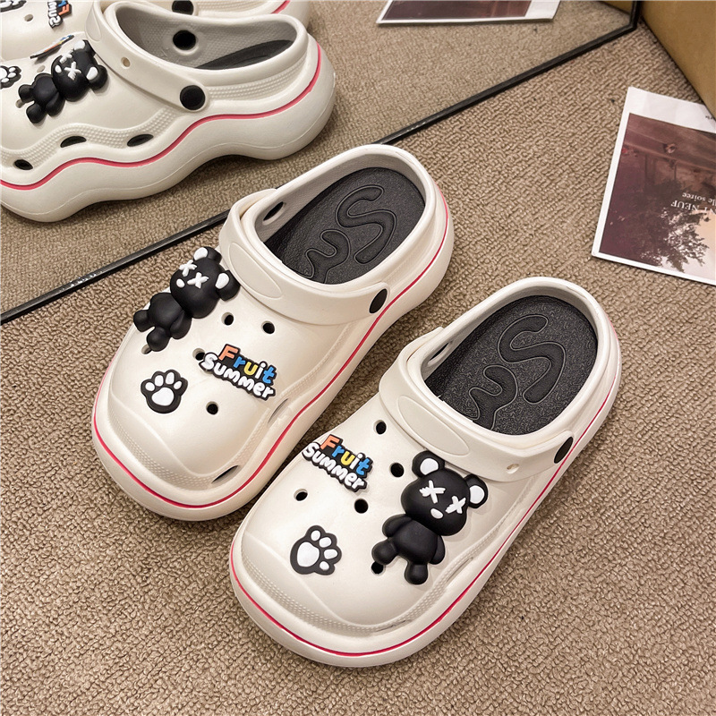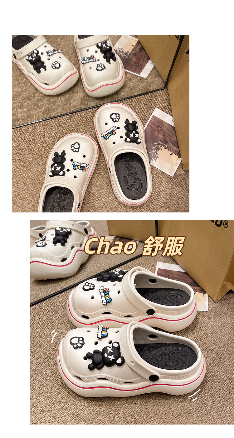 EVA 구멍 신발 여성용 두꺼운 단독 신발 여성용 샌들과 슬리퍼 Baotou 귀여운 학생 만화 2023 새로운 여름스토어 가기