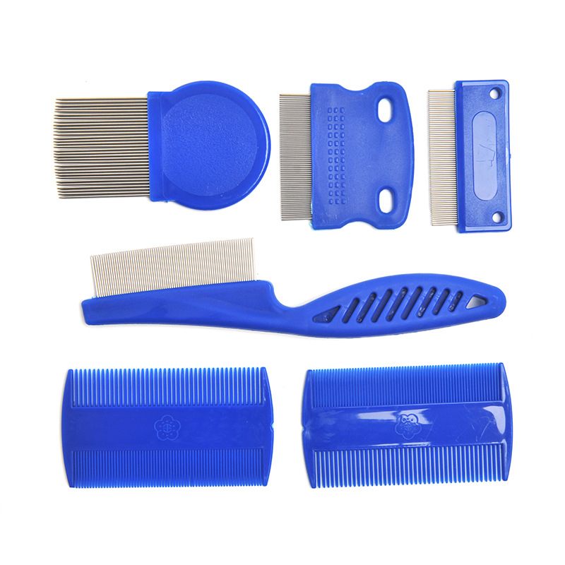 개 고양이 벼룩 빗 애완 동물 강철 바늘 빗 암호화 벼룩이 블루 뜨는 고양이 빗 6 종 세트