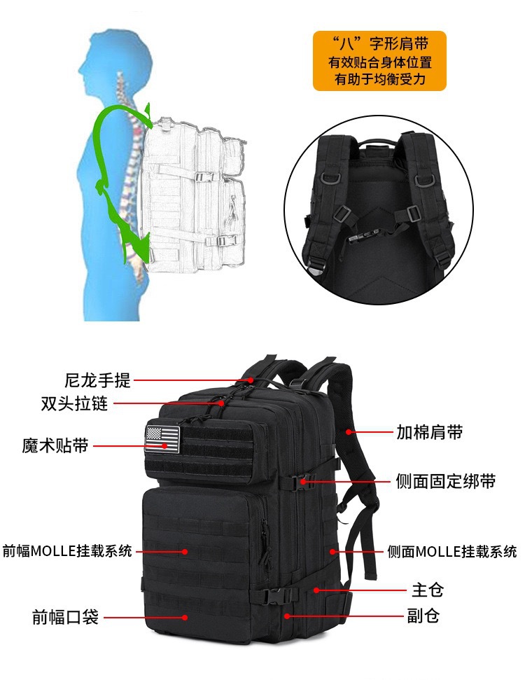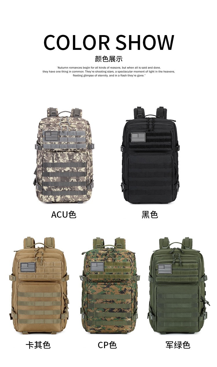 위장 전술 배낭 다기능 방수 및 내마모성 등산 가방 야외 하이킹 캠핑 배낭 대형 3P 배낭