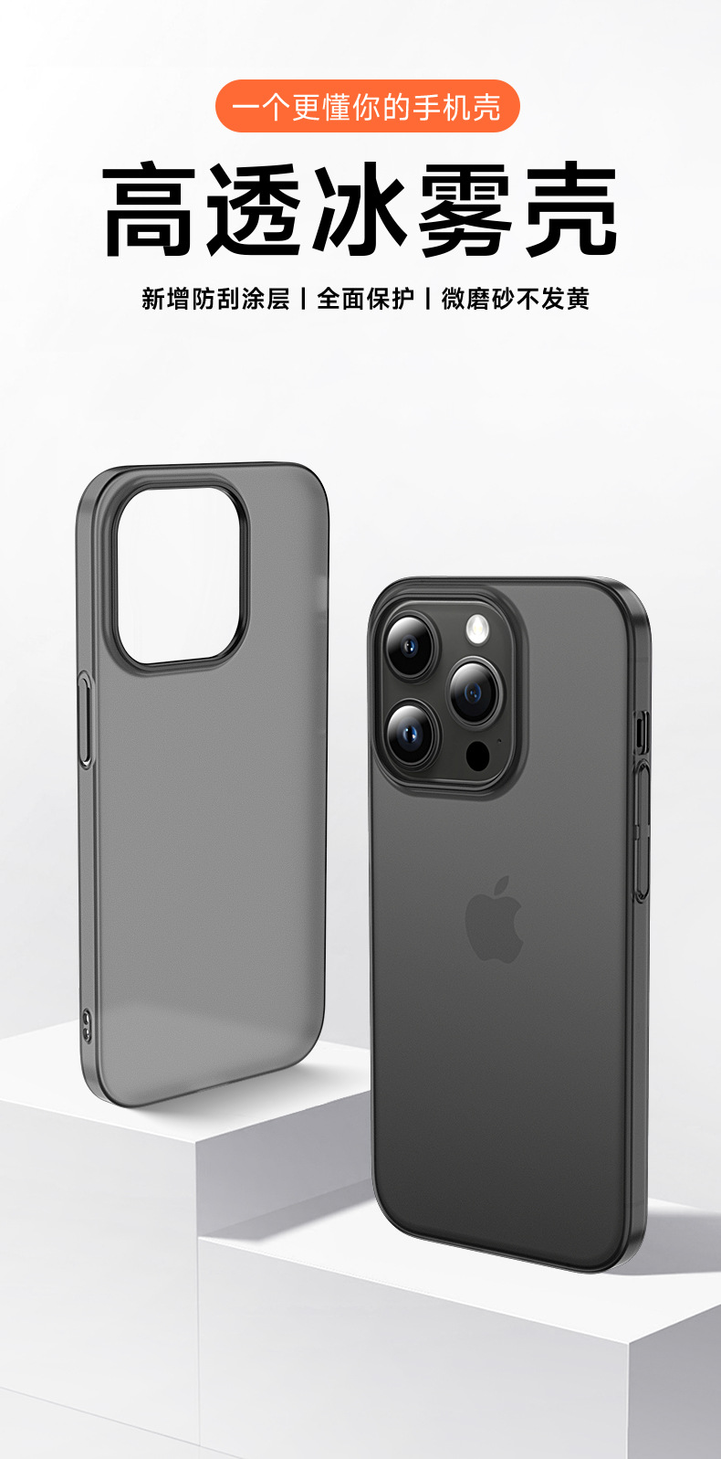 애플 16 휴대 전화 케이스 얼음 안개 PC 초박형 프로스테드 iphone15 피부 느낌 14promax 하드 13 반투명
