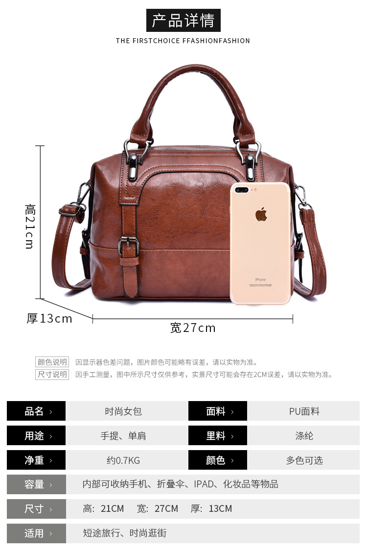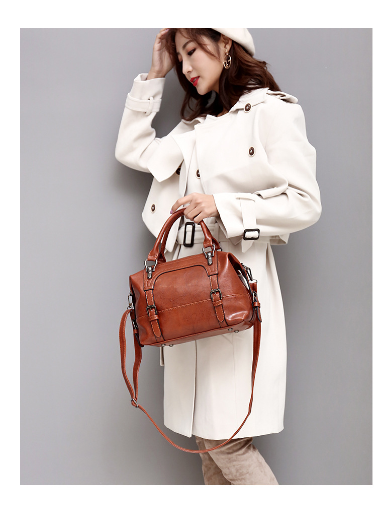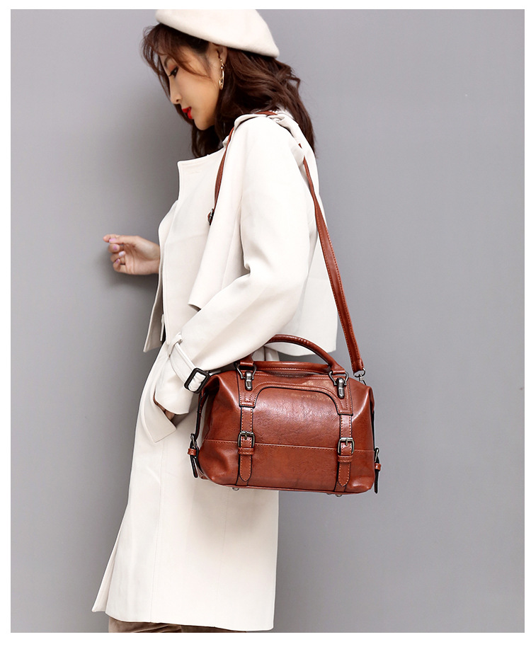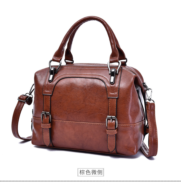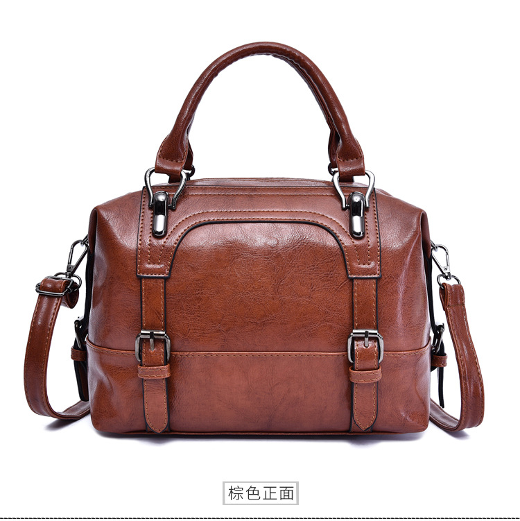 공장 직접 2023 유럽과 미국 패션 여성 가방 오일 왁스 가죽 숄더 메신저 백 핸드백 보스턴 여성 가방스토어 가기