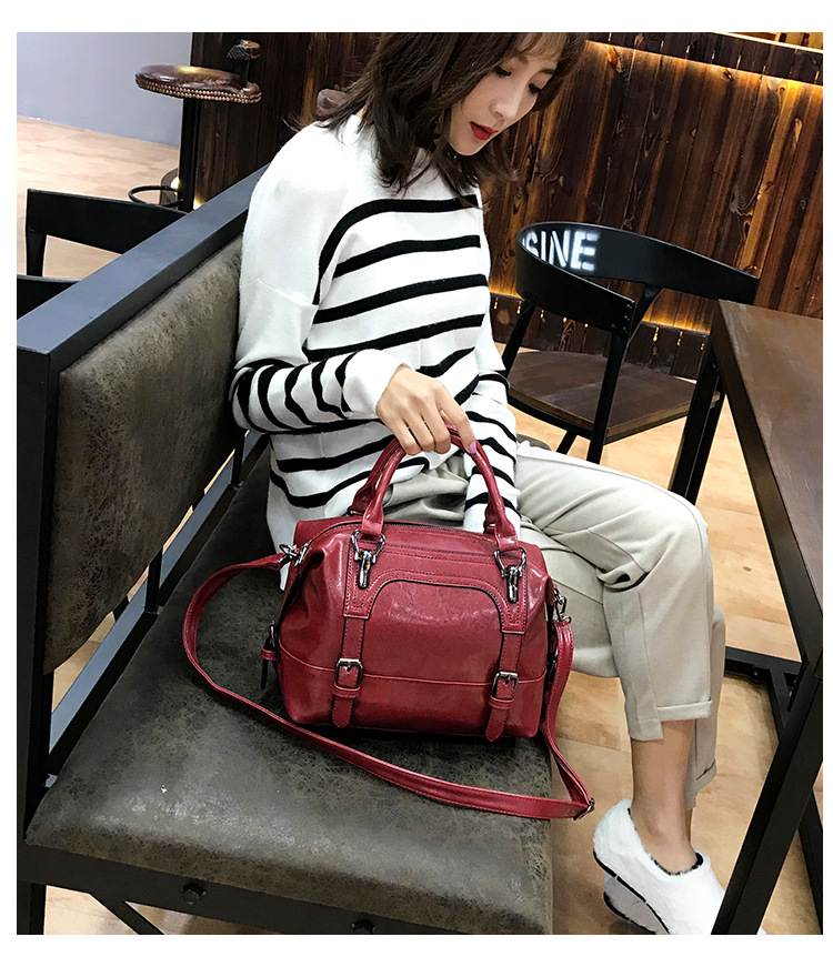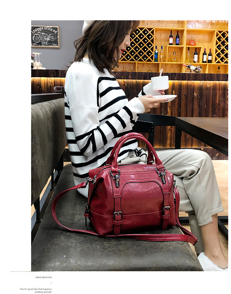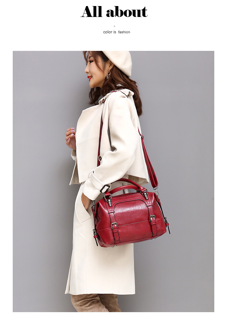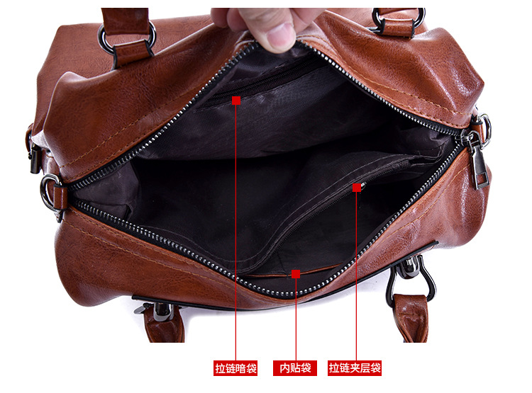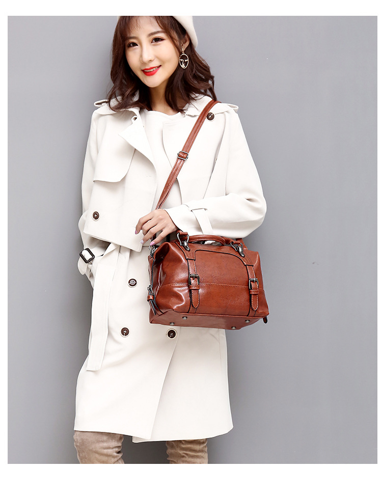 공장 직접 2023 유럽과 미국 패션 여성 가방 오일 왁스 가죽 숄더 메신저 백 핸드백 보스턴 여성 가방스토어 가기