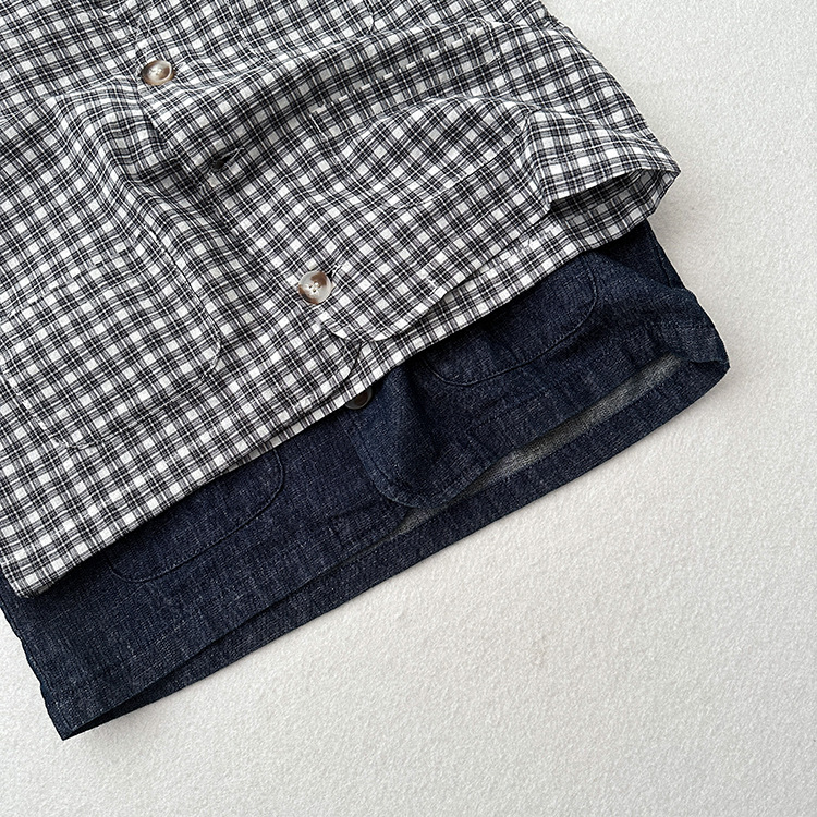 어린이 웨이슬 격자 무늬 데님 조끼 봄과 여름 신상품 소년과 소녀를위한 얇은 일본식 면화와 린넨 유행 조끼스토어 가기
