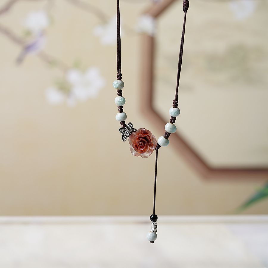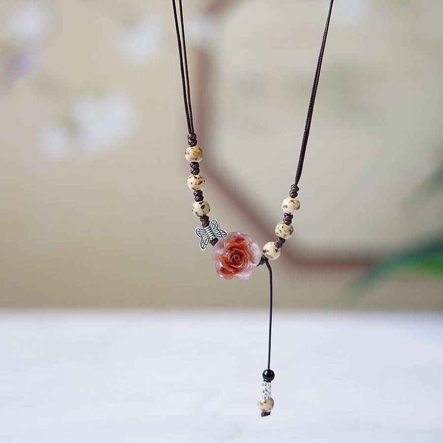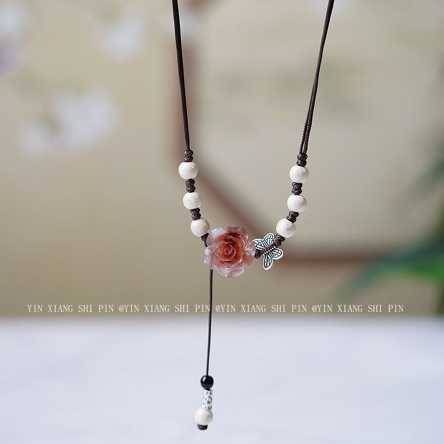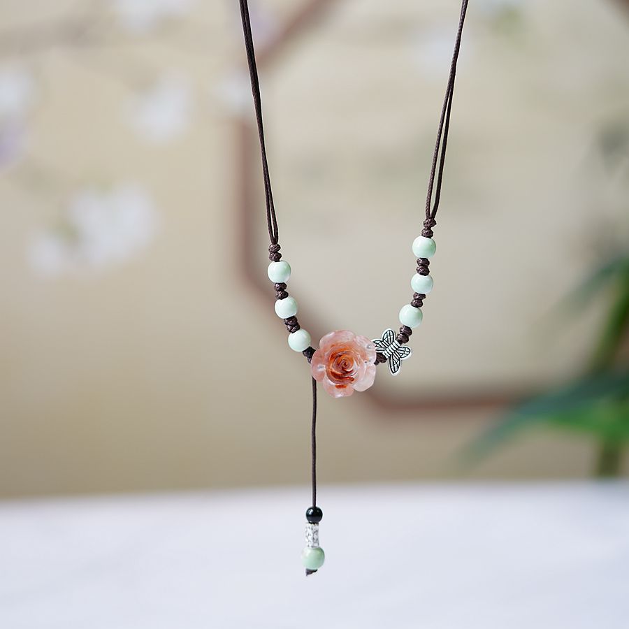 원래 동백 꽃 세라믹 목걸이 여자의 복고풍 스타일 새로운 중국 나비 쇄골 체인 빛 럭셔리 국가 패션 액세서리 끈