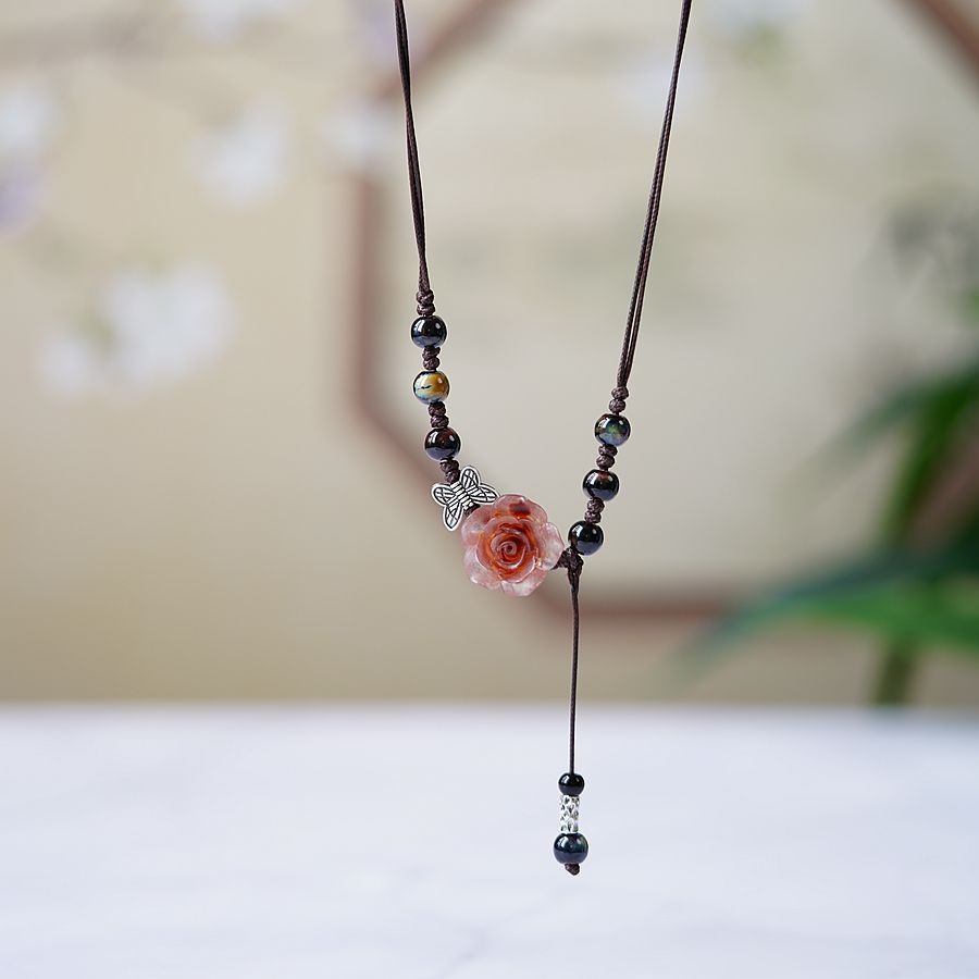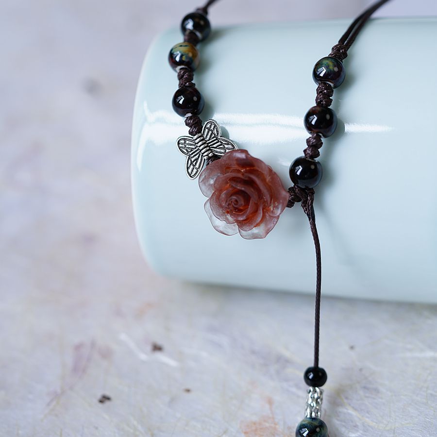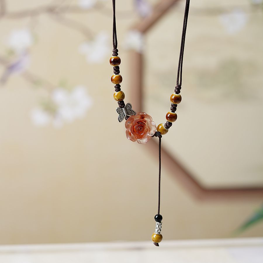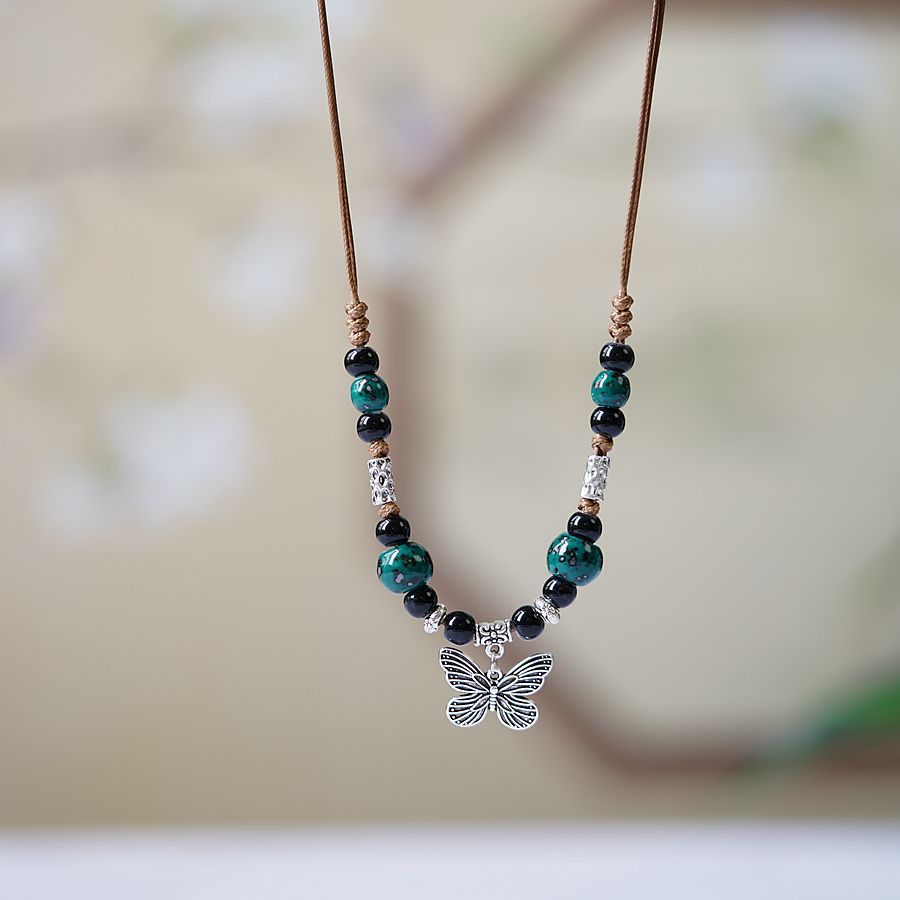 원래 동백 꽃 세라믹 목걸이 여자의 복고풍 스타일 새로운 중국 나비 쇄골 체인 빛 럭셔리 국가 패션 액세서리 끈