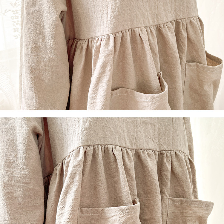 ALI6 작업복 여성용 반전 착용 앞치마 소매 긴 소매 순면 앞치마 미술 작품 그림 커피 숍 홈 키친