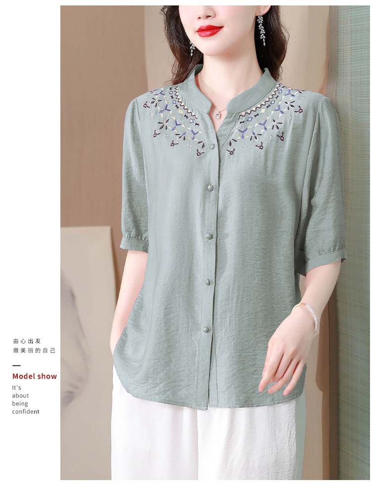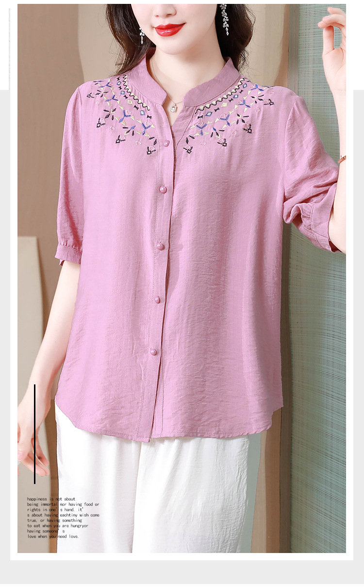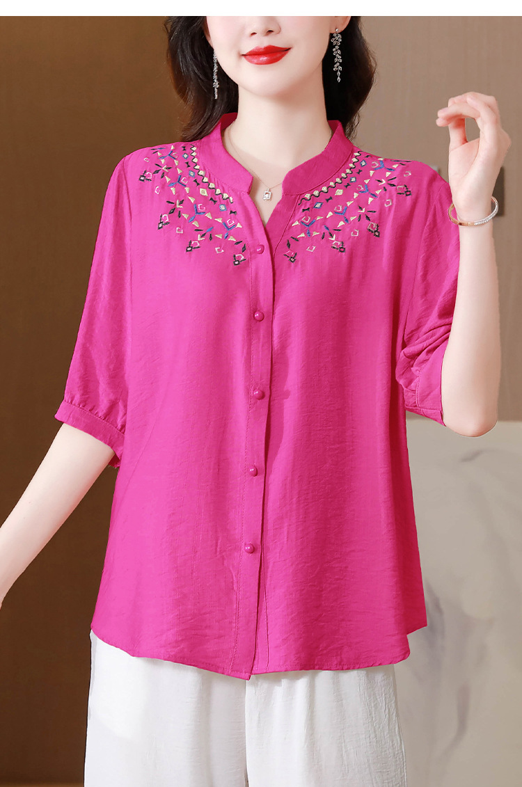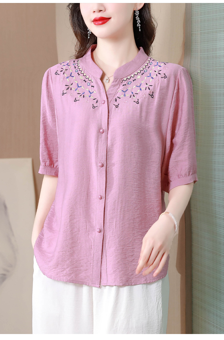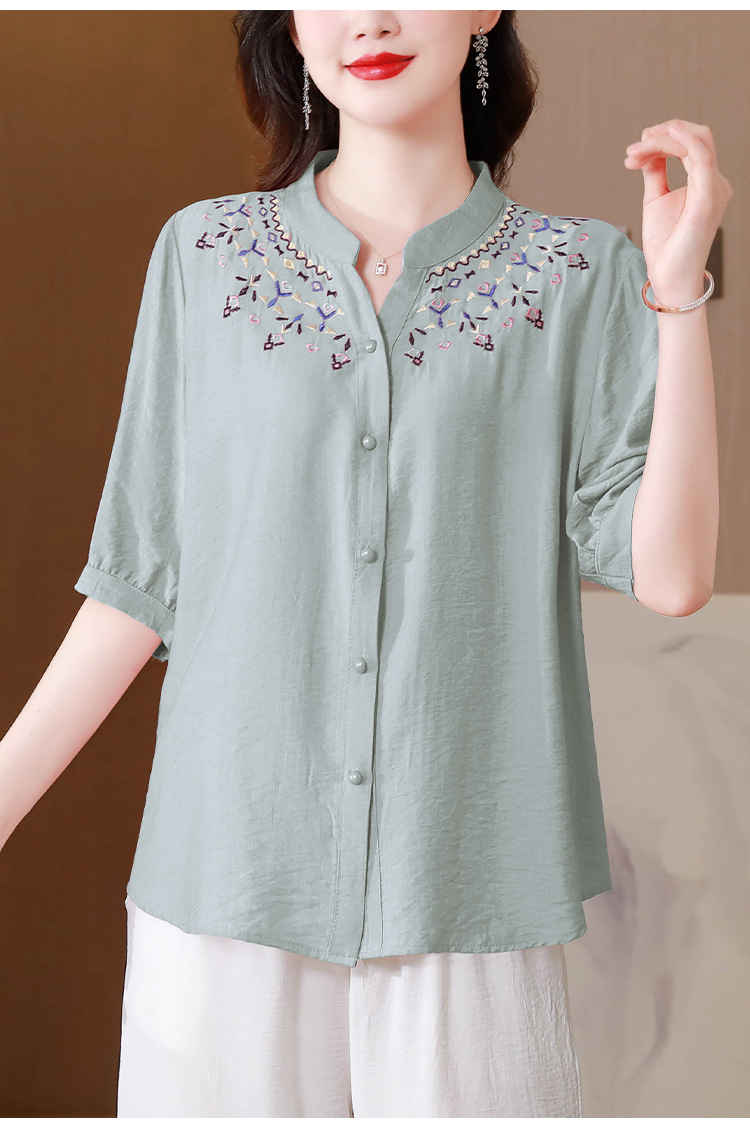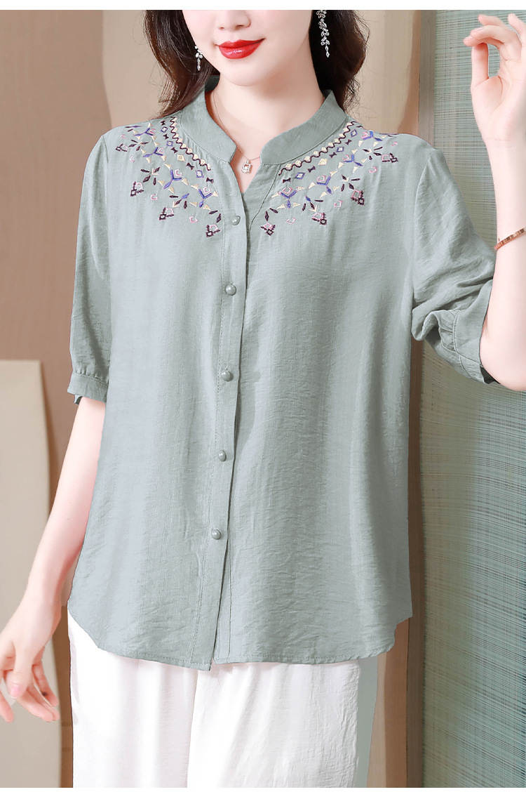 2023 여름 새로운 예술적 복고풍 에스닉 스타일 면과 린넨 자수 셔츠 여성의 느슨한 셔츠 우아한 여성 의류스토어 가기